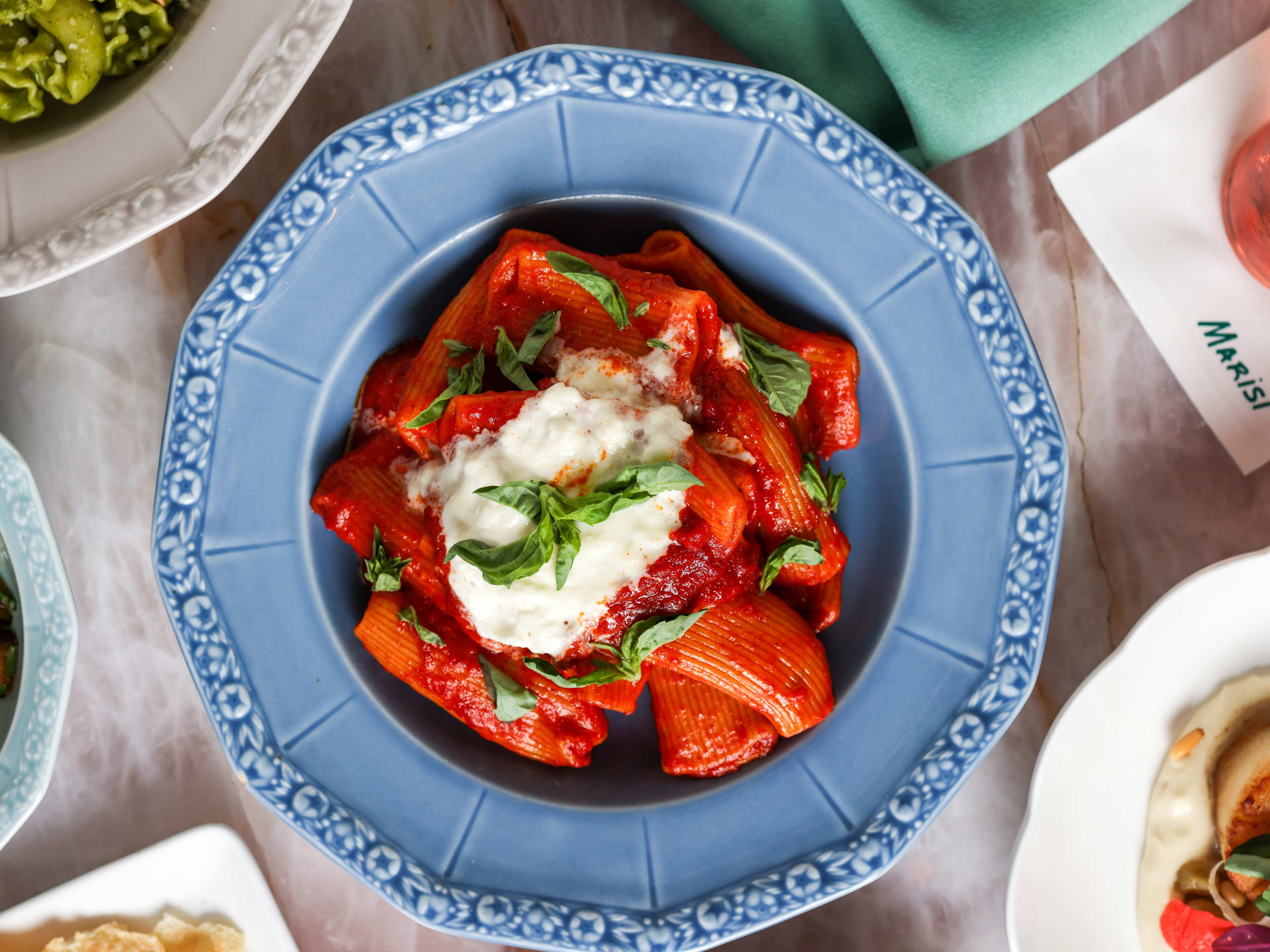 "Couples splurging on date nights flock to this big-budget Italian restaurant for a stunning vine-covered patio and grilled meats that might fool you into thinking you teleported to Tuscany. The best table is in the corner where, safely behind glass, you can watch chefs toss food onto a flaming hearth that chars and sears behemoth Florentine-style steaks, or head-on prawns swimming in a garlicky wine sauce that demands to be paired with a still-warm loaf of heirloom grain focaccia. If you need all eyes on you, order the roasted bone marrow, which arrives on a huge wooden plank as an entire femur bone, split lengthwise and served with salsa verde and a stack of grilled sourdough." - Candice Woo