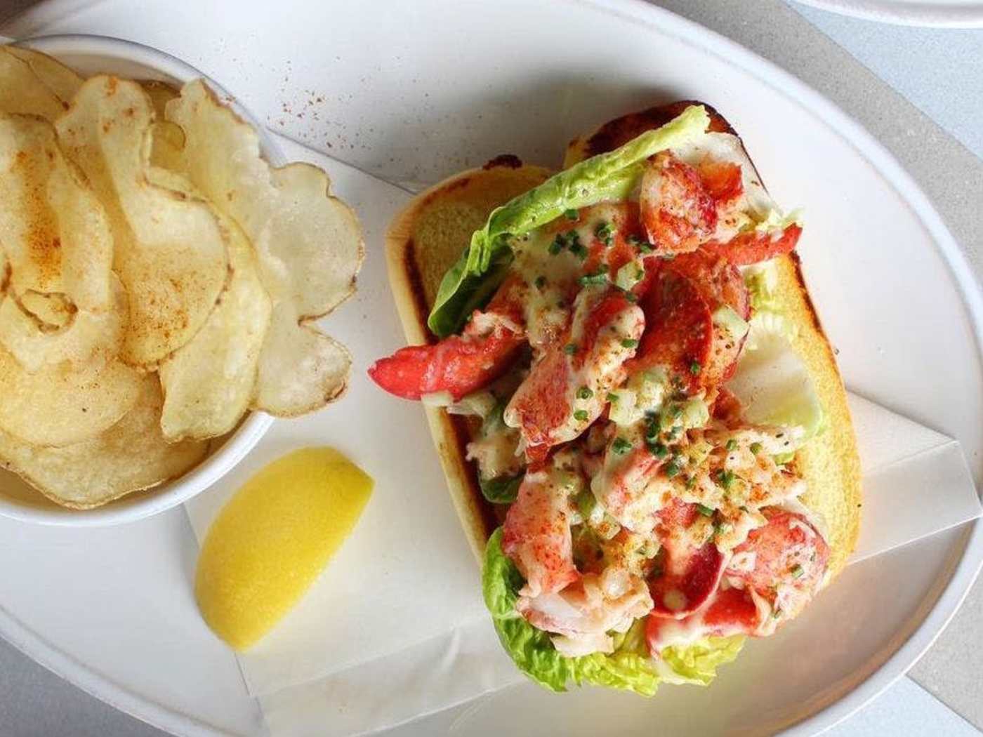 "The Fulton's lobster roll consists of plump, un-chopped portions of whole claw meat in a soft and buttered potato bun. This Seaport spot’s lobster salad has a good amount of salt as well as a little spice from Tabasco and black pepper, and the celery and gem lettuce provide a lot of crunch. On the side, you'll get housemade potato chips with a dusting of malt vinegar powder—not as fantastic as a side of fries, but worlds better than a side salad. This lobster roll is only available at lunch and brunch, so stop by on a nice afternoon and eat one on the outdoor patio." - willa moore, bryan kim, molly fitzpatrick, sonal shah