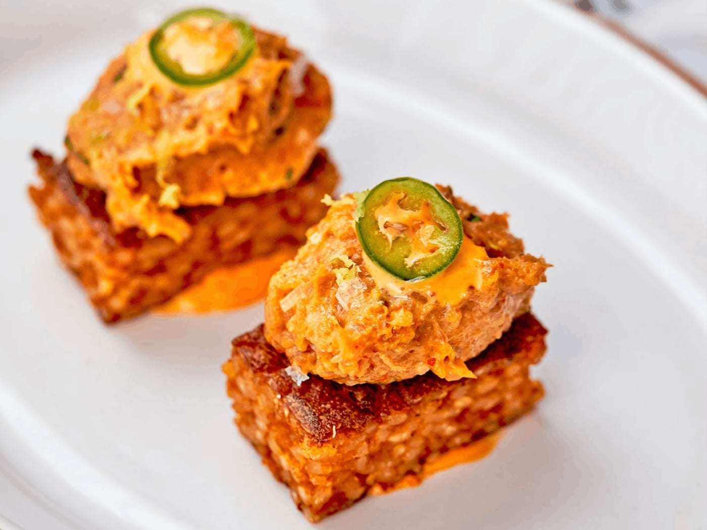 "This new-ish West Hollywood restaurant has one of the best patios in town, making it the kind of place where you and your friends can sip on cocktails while you do some top-quality people watching. You can’t go wrong with the savory eggplant hummus and delicious chicken croquettes for starters before making your way to two different paella dishes. The first is the spicy paella bites, which are essentially a Spanish play on crispy rice sushi. The fried seafood rice squares have that ideally satisfying crunch while also tasting just like saffron and stock-infused paella. The fatty big eye tuna adds some needed freshness and texture contrast to everything, which then gets topped off with a spicy aioli. And then there’s the traditional bomba rice that comes out dark orange from the saffron and tomato-heavy sofrito, which helps form the crispy edges we like to nibble on before the staff takes the pan away. We don’t necessarily mind that the paella’s seafood and chorizo don’t get mixed in (they sit on top with some veggies instead), but it wouldn’t hurt to have the sofrito mingle with the shellfish to make it all feel more cohesive." - Sylvio Martins