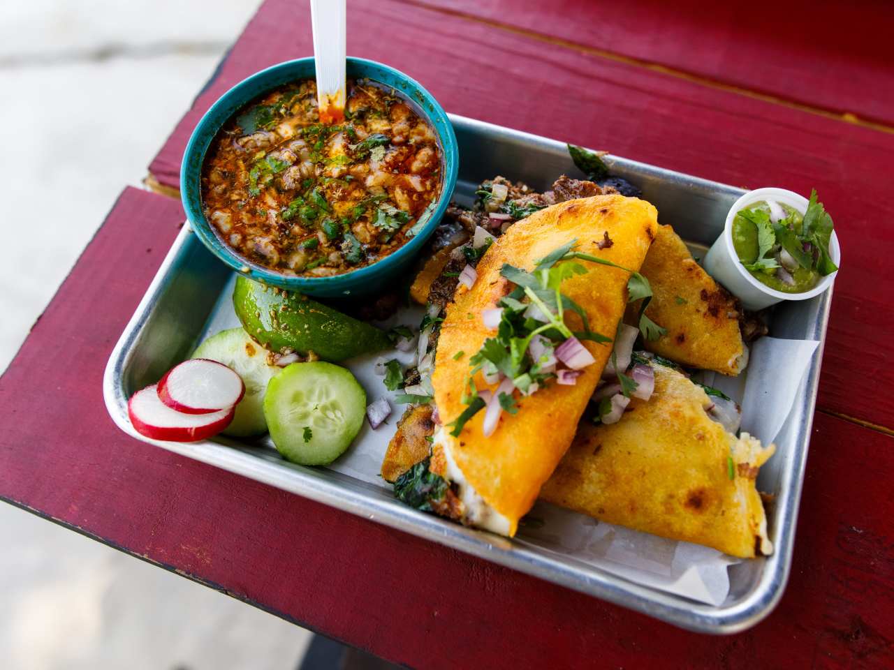 "Autenticos Michoacanos is a food trailer located in a parking lot near Menchaca Dr (and Stassney), with a wide menu of tacos, tortas, quesadillas, machetes, and just about anything else you can fit inside of a tortilla, including quesabirria with consomé. We’re especially partial to the campechano tacos here that pack a savory mix of beef and pork into some excellent house-made corn tortillas. What to get: Campechano taco; Quesabirria taco" - nicolai mccrary, raphael brion