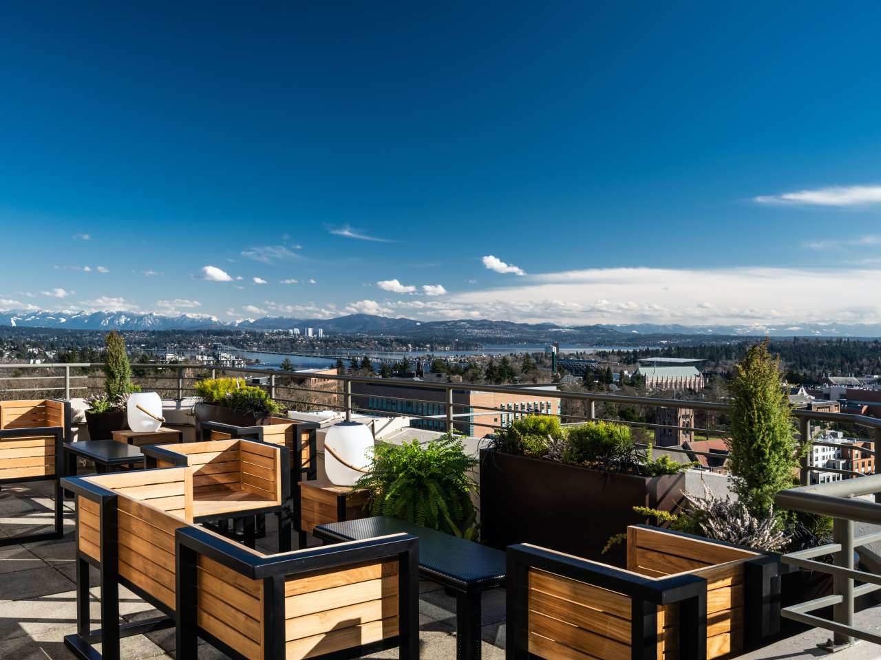 "Nope, this isn't some excursion to the wilderness. You're coming here to take an elevator up to the roof of a University District hotel, drink a fancied-up long island iced tea topped with blackberry gummies, and eat a great bacon sandwich. We love the inside, but the patio is the best seat in the house, where you can see the entire skyline. It’s lively and fun without being logistically impossible to get a seat, and somewhat avoids the try-hard energy that can make other rooftops feel more like a photoshoot than a bar." - aimee rizzo, kayla sager riley, gabe guarente