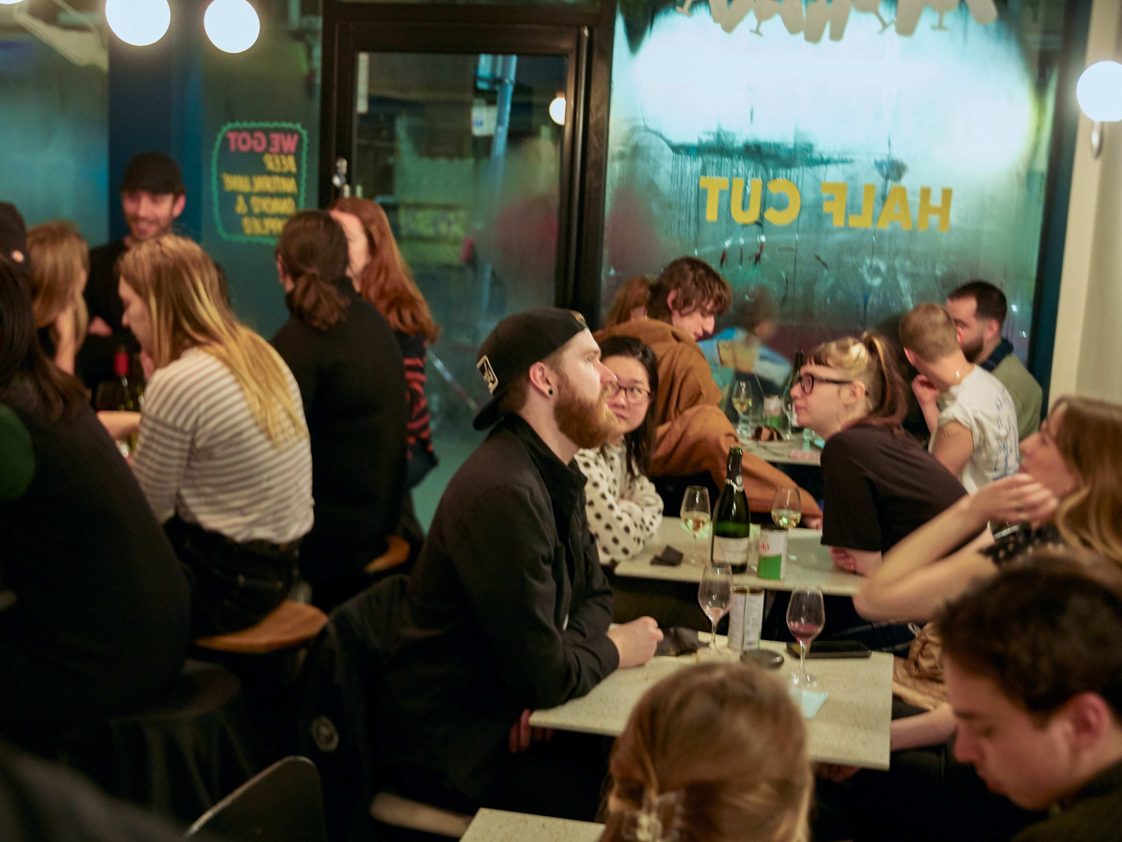 "Perfect for: drinking natural wine and plotting your festival aesthetic If you’ve got a thing for wandering into a shop and accidentally dropping 40 quid on something orange and something artisanally crunchy that was once a potato, chances are you already worship at the pét-nat altar of Kentish Town’s Half Cut Market. Still, according to us and anyone in possession of a pair of Tabi pumps, sipping lambrusco is a hobby that can only be improved upon by sweltering short shorts weather. If you’re also in the market for small plates, you can reserve one of the tables out front, but we’d also happily hover for a prime drinking spot on their self-dubbed York Way Riviera." - heidi lauth beasley
