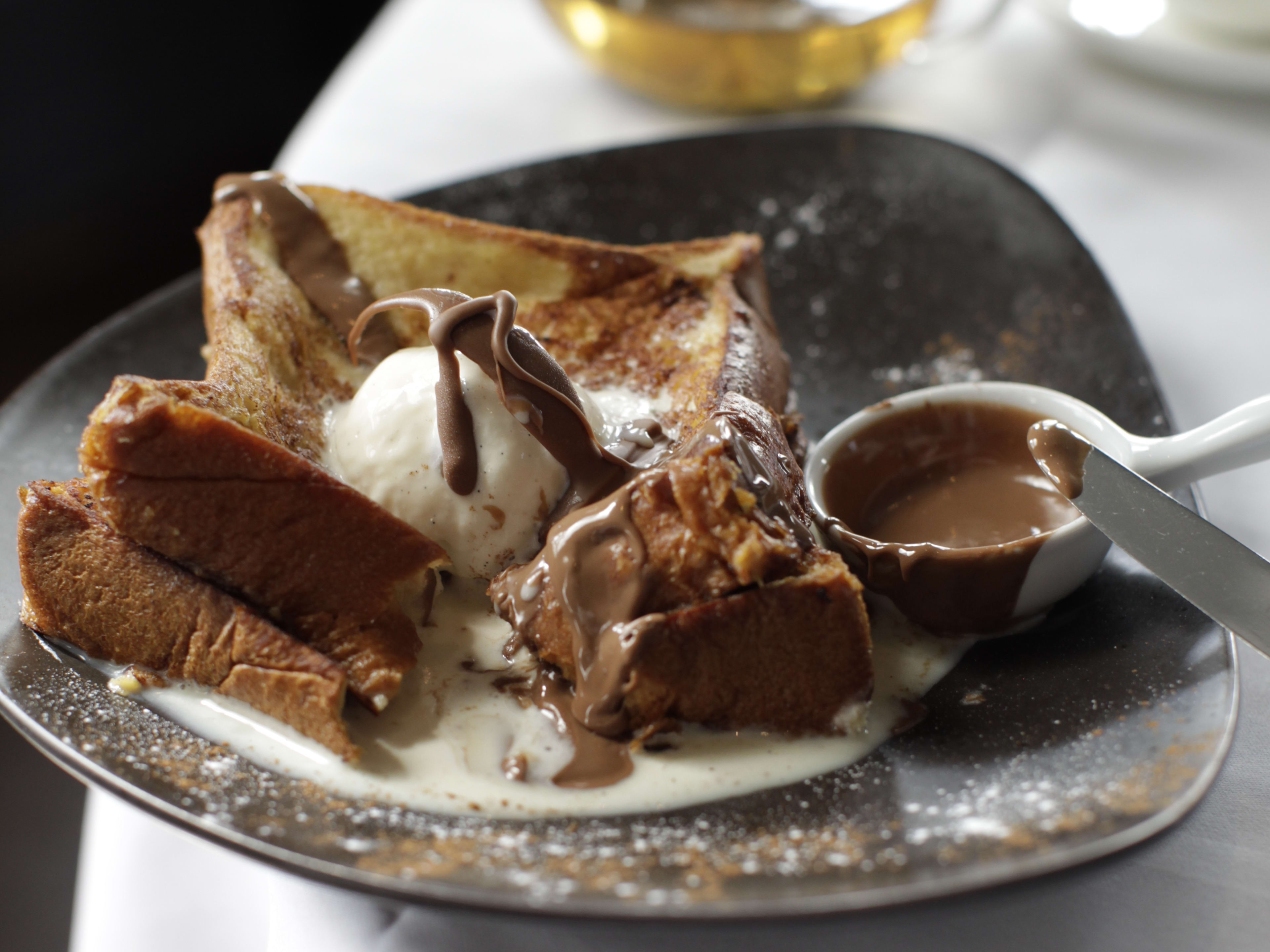 "When you come to this two-floor American restaurant in Covent Garden for brunch, book the upstairs dining room. It’s got high ceilings, an open and airy feel, and round tables with white tablecloths that will make it hard for your friend to reach over for a bite of your wagyu steak. (Know that all of the wagyu beef options on the menu are halal.) Our go-to move is to get one of their hefty burgers and leave enough stomach space for the chocolate-filled, brioche french toast. It’s our favourite french toast in the city." - rianne shlebak, jake missing, heidi lauth beasley