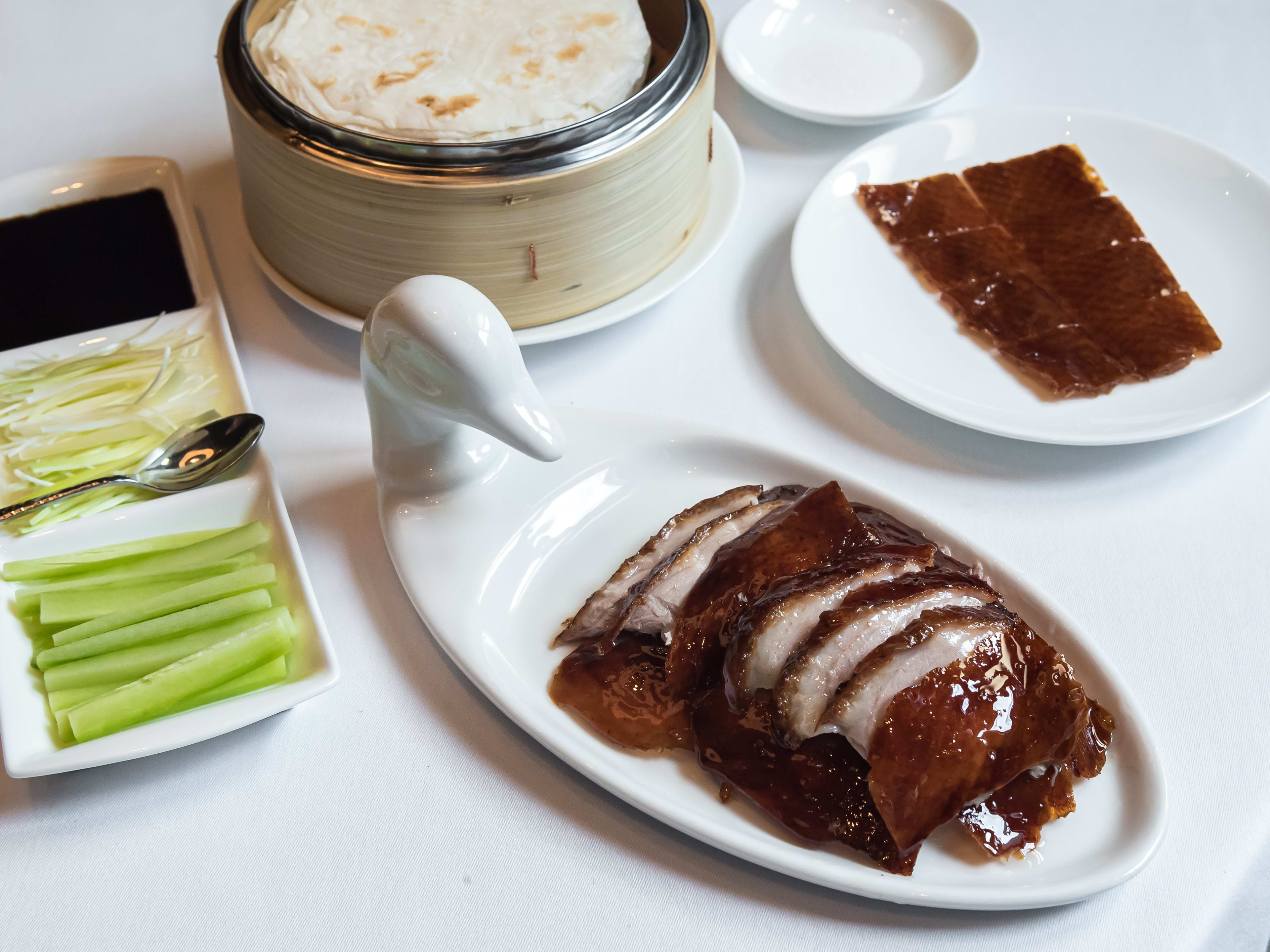 "Imperial in name and imperial in price—four pieces of siu mai will set you back in this sedate St. James’s restaurant. Other than all the expert, glistening cheung fun, you’re at Imperial Treasure for the live action show, ‘Reverential Duck’. The signature peking duck needs to be pre-ordered but it’s worth it for the sweet, alluring crunch of the skin, the best-in-class pancakes, and the slack-jaw wonder of watching the duck being carved tableside with the meticulous care of Michelangelo at work." - heidi lauth beasley, jake missing, rianne shlebak, daisy meager, sinead cranna