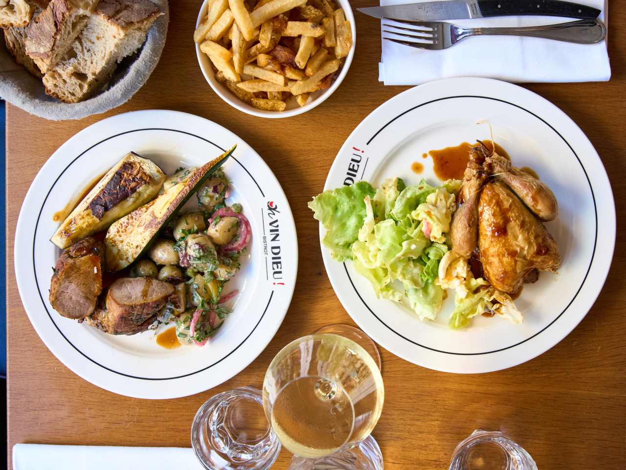 "The 8th isn’t known for monuments or tourist attractions, but you should know it for Oh Vin Dieu. They serve perfectly plated fine-dining-quality food and wine at a price that ensures you don’t have to throw down a month’s worth of rent. The seasonal dinner menu of traditional French food only has four main dishes, thus letting you use the brainpower to choose bottles off the multipage wine menu. If you see the oeuf mayo with squash seeds and pickled carrots, zero in on it, and try the braised ris de veau with a glass (or bottle) of Cru Beaujolais or tête de veau (calf’s head) with a red Cotes du Jura to level up the experience. Reservations are a must, but plan accordingly: they’re closed Friday evenings, and Saturday and Sunday." - Tanisha Townsend