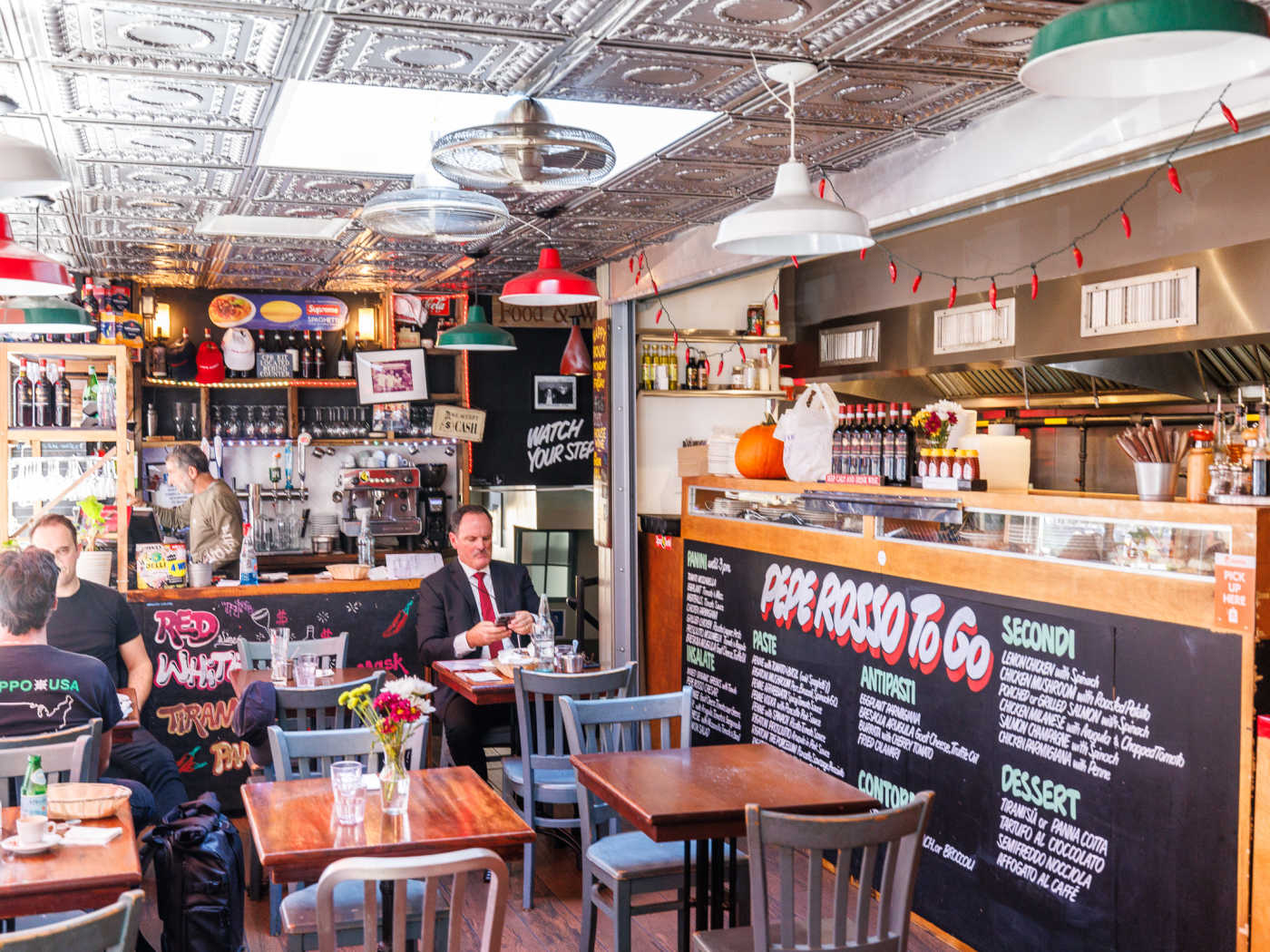 "To be clear, you don’t have to take your food to go here. There are about five small tables where you can eat your food after you order at the counter. This a tiny neighborhood Italian spot, and the menu is surprisingly large for how tiny the space is. They have paninis, salads, chicken, and salmon - but you can skip all of that and just get some pasta. Order off the menu or just pick a pasta and sauce, then get a piece of focaccia to mop up the remains, and you’ll be very well-prepared for a nap. photo credit: Alex Staniloff" - Bryan Kim