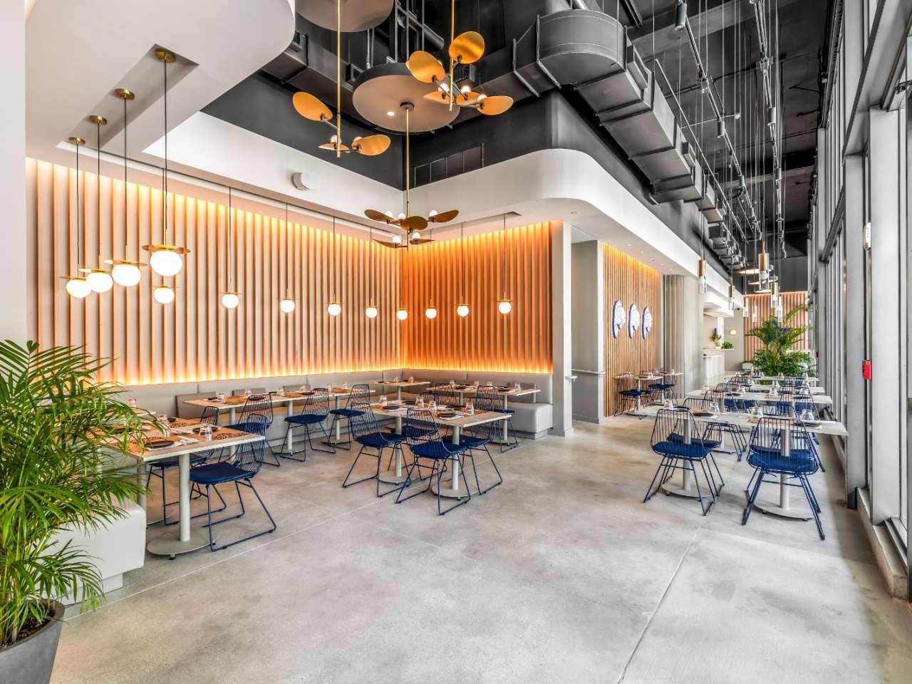 Upscale sports bar with globally inspired dishes & lively atmosphere