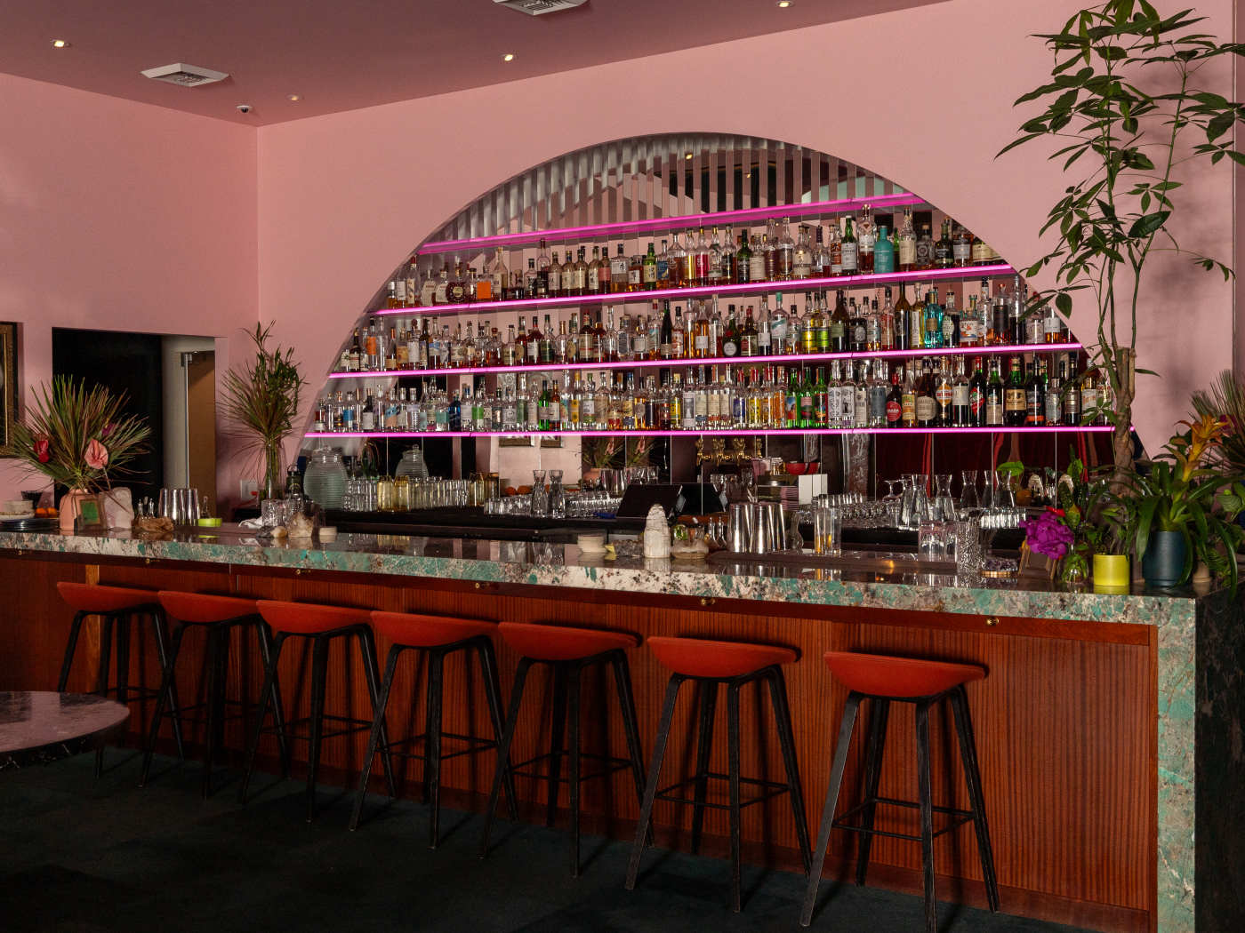 "You want a cocktail and you have Miranda Priestly-levels of taste. Head to Chinatown’s Moongate Lounge. The spot above Mister Jiu’s is straight up sexy, looking like a Bond lair, but with an illuminated bar, red velvet everywhere, and elegant lotus chandeliers. It’s all very swank, but a night here tends to add up. So dig in, vibe under the fluorescent blue and pink lights next to someone who’s probably cooler than you, and drink a frothy cocktail inspired by the Chinese lunar calendar. The glowing skylight beckons. photo credit: Carly Hackbarth photo credit: Carly Hackbarth photo credit: Carly Hackbarth Pause Unmute RESERVE A TABLE WITH RESERVE A TABLE" - Lani Conway