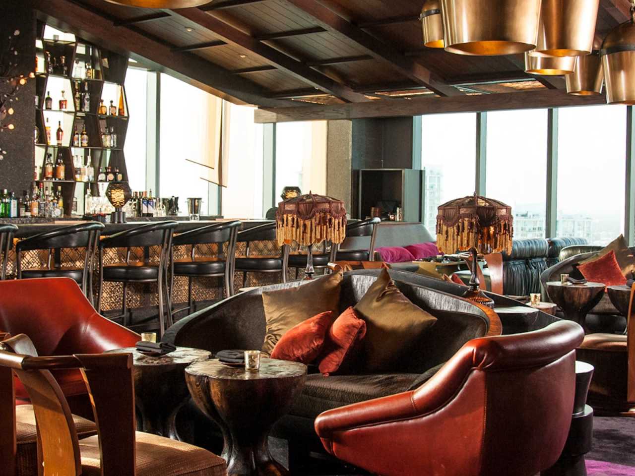 "Team Room is a fancy rooftop spot in Brickell. You’ll find it behind a somewhat secret door just down the hall from Sugar, its sister bar on the top of the East Hotel. This dark room is more of a sit-down restaurant and bar than Sugar, but it actually has an even better view thanks to the floor-to-ceiling windows that offer a spectacular look at the Miami skyline. Team Room does an “Asian night brunch” with dishes like bang bang shrimp, spring rolls, dumplings, and some sushi rolls. The food is not too impressive, but the view does make up for it." - Ryan Pfeffer