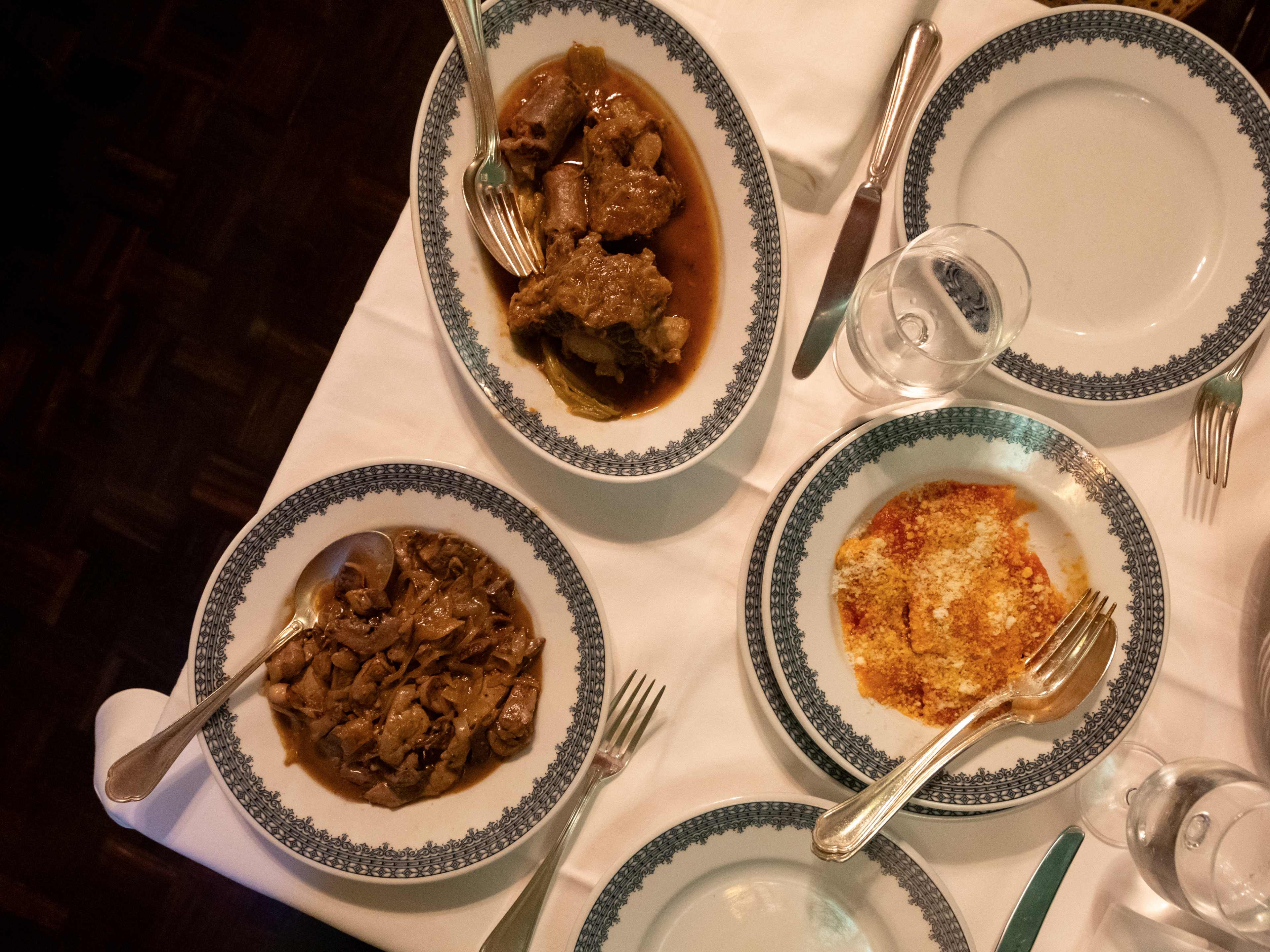"It’s the emerald green walls and the platter of coratella that’ll stay with you after a meal at Piperno, an old-school spot in the Jewish Ghetto. Made from lamb offal—heart, lungs, and liver—coratella is classic cucina povera, meaning humble ingredients turned into something rich and satisfying. Here, the innards are slowly sautéed with caramelized onions, creating a subtly sweet sauce that mellows their gamey flavor. Make sure to mop up the gravy with bread. This dish may come from peasant cooking, but the white tablecloths and sharp service say otherwise. Glasses are topped off without asking by waiters who recite the menu like they wrote it themselves. photo credit: Maela Bonafede RESERVE A TABLE" - Annie Replogle