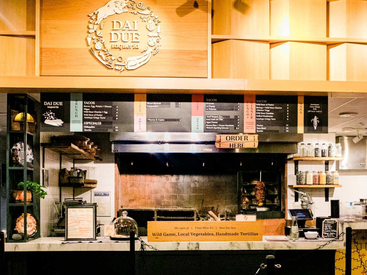 "Dai Due Taqueria – an offshoot of the East Austin butcher shop/restaurant Dai Due in the downtown food hall Fareground – might be best known for its wood-fired trompo and al pastor tacos, but it’s the breakfast tacos that you should be coming here to eat. The first time we tried them, we sat there for a while, stunned, admiring them like the glowing briefcase in Pulp Fiction. The foundation are the tortillas: homemade heirloom corn tortillas or flour tortillas made with freshly-rendered lard and locally-produced flour; there are only a few other places in town with flour tortillas this good. The eggs glow a hue that only the eggs of the happiest of chickens could produce. There’s a wild boar chorizo taco with egg, potato, and refried beans; a migas taco with crispy tortillas and a brilliant and citrus-y avocado; and a basic bacon, egg, potato, and cheese (that’s anything but basic when the bacon’s from Dai Due). The roasted red salsa and the salsa verde are so much more intense than the standard red and green salsas you get everywhere else. The only problem with these breakfast tacos is that they’re only available on the weekends from 9am-3pm (which makes them special and rare, sort of like a meteor or a McRib). Make sure to eat them outside in the courtyard under the old oak trees." - Raphael Brion