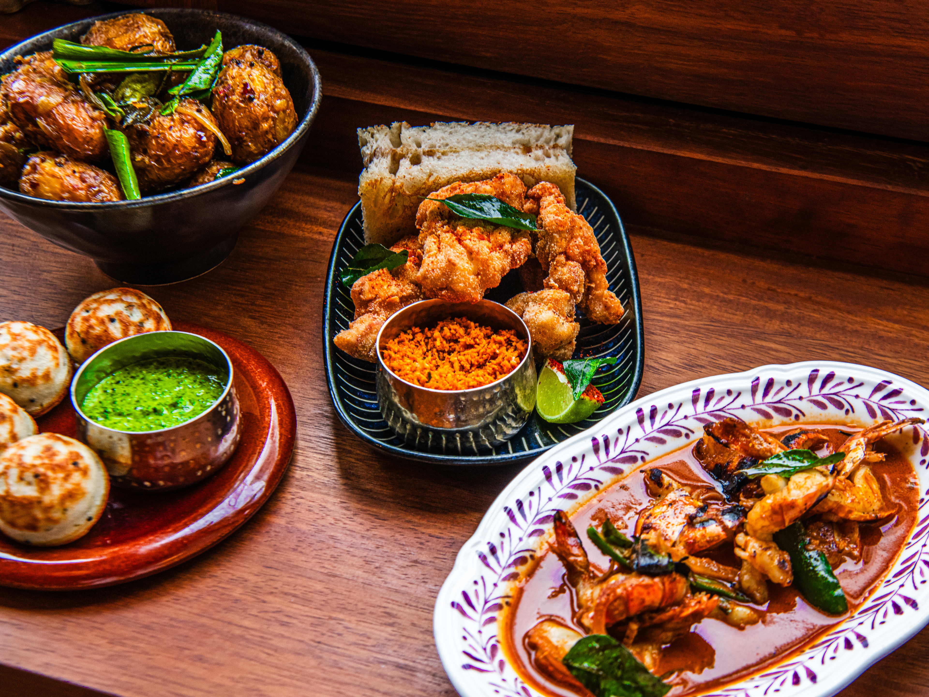 "Sometimes all you need is a warming open-fire kitchen, clay-coloured walls, and course after course of well-balanced, deeply satisfying small plates to remind you why London is so great. Rambutan—one of the best Sri Lankan restaurants in the city—has all that, and so much more. The menu changes regularly but when they’re on, the prawns, cooked in a silky curry sauce over the fiery aduppu are a must. As are flaky rotis for mopping up every last drop of said sauce. The counter is the sought-after spot for a front-row seat to the kitchen action." - sinead cranna, rianne shlebak, jake missing, daisy meager, heidi lauth beasley