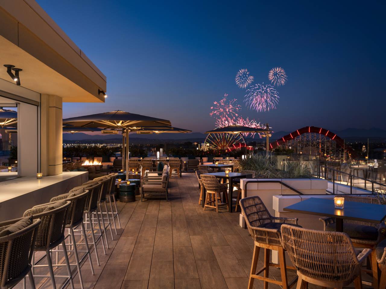 "The nightly firework display at Disneyland is big business in Anaheim and several hotels have rooftops catering to anyone who wants to see pyrotechnics before calling it a night. For that purpose, Rise Lounge is the best of the bunch. Perched on top of The Westin, the large space offers unobstructed views of California Adventure, live music, solid bar bites like “loaded” hummus and spicy chicken wings, and a crowd of vacationing parents getting obliterated on red wine. It’s also open daily until 11pm, which is basically after-hours in Anaheim." - brant cox
