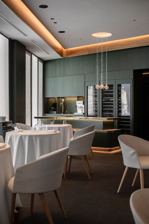 "Another culinary project courtesy of renowned sommelier Marcos Granda, who returned from Japan at the end of 2019 astonished by its culture and the country’s respect for the finest ingredients – a revelation which led to the development of this new project. Nintai features a design based around pure lines, large windows, several private dining spaces and a large sushi bar with 12 seats, where guests can watch him work, create and improvise his “itamae” style of cooking (which literally translates as “in front of the chopping board”). Here, everything induces a feeling of serenity – the perfect state of mind in which to savour the single ENSō tasting menu (two courses we particularly enjoyed were the Mushimono, showcasing the skill of steaming, and Otsukuri, based around raw textures) where the ingredients used are dependent on the seasons and market availability. Other highlights include the large cuts of tuna that are sliced in front of guests. Given that this is a Japanese restaurant, the desserts come as something of a surprise, plus Nintai also offers one of the best sake menus in Spain." - Michelin Inspector