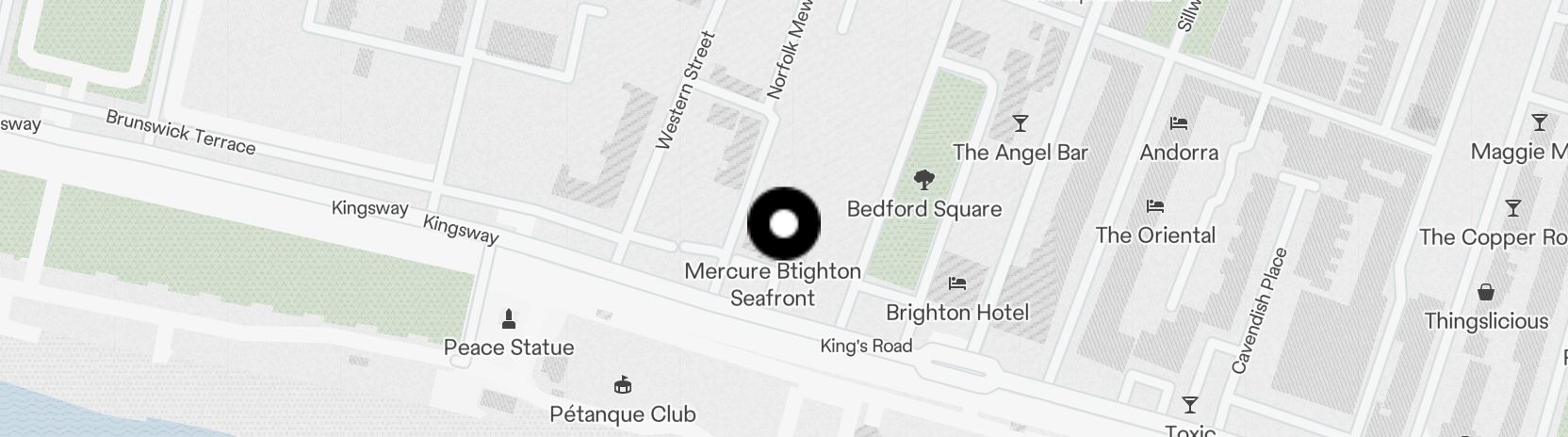 "This elegant Victorian hotel overlooks the beach, sea and promenade, and has a brasserie restaurant for guests to enjoy. It is half a mile from Churchill Square shopping center, and has free high-speed Wi-Fi throughout. Mercure Brighton Seafront Hotel has a bar and 24-hour room service. Each clean, modern room has a flat-screen TV with satellite channels and a private bathroom with toiletries. Some rooms have sea views. A Grade II registered historic building, it was built in 1864 and retains traditional features like its original Regency staircase. Guests can dine in the restaurant, which overlooks the sea and offers food 24 hours a day. Brighton Pier, The Lanes and the Royal Pavilion are 1 mile from the hotel. The convention center and town center can be reached in around 10 minutes by foot." - My Boutique Hotel (en)