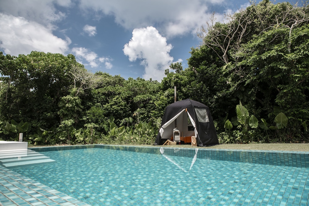 "Located in Ishigaki Island overlooking beautiful ocean, Jusandi offers self-catering villas fitted with designer furniture and free WiFi. The property is a 1-minute walk to Ao-no-Dokutsu (Blue Cavern) and a 15-minute walk to Yonehara Beach. Boasting a private garden terrace and a swimming pool, each villa comes with air conditioning, a sofa and an iPad. Complete with a fridge, the dining area also has an electric kettle and a coffee machine. A complimentary minibar is offered. The private bathroom features a bath tub, a hairdryer and free Aromatherapy Associates toiletries. At Jusandi you will find a private beach area. Other facilities like luggage storage are offered. Activities in the surrounding area include snorkeling and canoeing. The property offers free parking. Shin-Ishigaki Airport is a 15-minute drive from the property. Both Japanese and Western cuisines featuring local ingredients can be savoured at the on-site restaurant. Guests can enjoy freshly baked bread and sea breeze in the morning at the restaurant or at the terrace." - My Boutique Hotel (en)