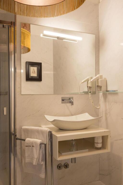 "Oporto Loft is located in Porto, just 50 metres from the Crystal Palace Gardens and an 11-minute walk from the famed Lello Bookshop and the iconic Clerigos Tower. The São Bento Train Station is at a 15-minute walk away. The unit is set on a renovated 19th century building and features themed rooms with a décor and design influenced by traditional and contemporary art. All rooms are equipped with fan coil units, which allow them to heated or cooled. Each features a flat-screen cable TV, minibar and work desk. Free WiFi is provided. Local restaurants are available at a 5-minute walk. The traditional Porto cuisine is rich and varied, with signature dishes like the famed Francesinha and Tripas à Moda do Porto. The Douro riverside area is a 14-minute walk from the unit. At 2.3 km is the historical Ribeira, with its various riverfront cafés, bars and restaurants. Within a 12-minute walk are the Clérigos Church and the Galerias de Paris nightlife spot, with trendy bars and cafés. Porto International Airport is 14.8 km away from the Oporto Loft." - My Boutique Hotel (en)