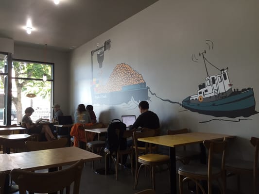 "Mighty O Donuts, Ballard by Brooks Running Global Creative. So you are a vegan, great! We have a donut shop that doesn't hurt kittens and bunnies but also whips up some of the best donuts in town. Their little shop is a great place to study, read a book, or bring your kiddo."