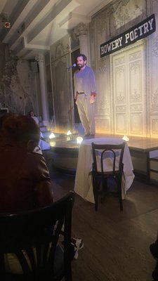 "Started in 2002 with a grungier feel, the Bowery Poetry club is now and elegant evening experience with a little something for everyone. With events on Sunday and Monday, patrons can enjoy open mics, stand up, poetry readings, music, and a handful of other eclectic performances while grabbing a drink from the full bar." - Carbone Smolan Agency