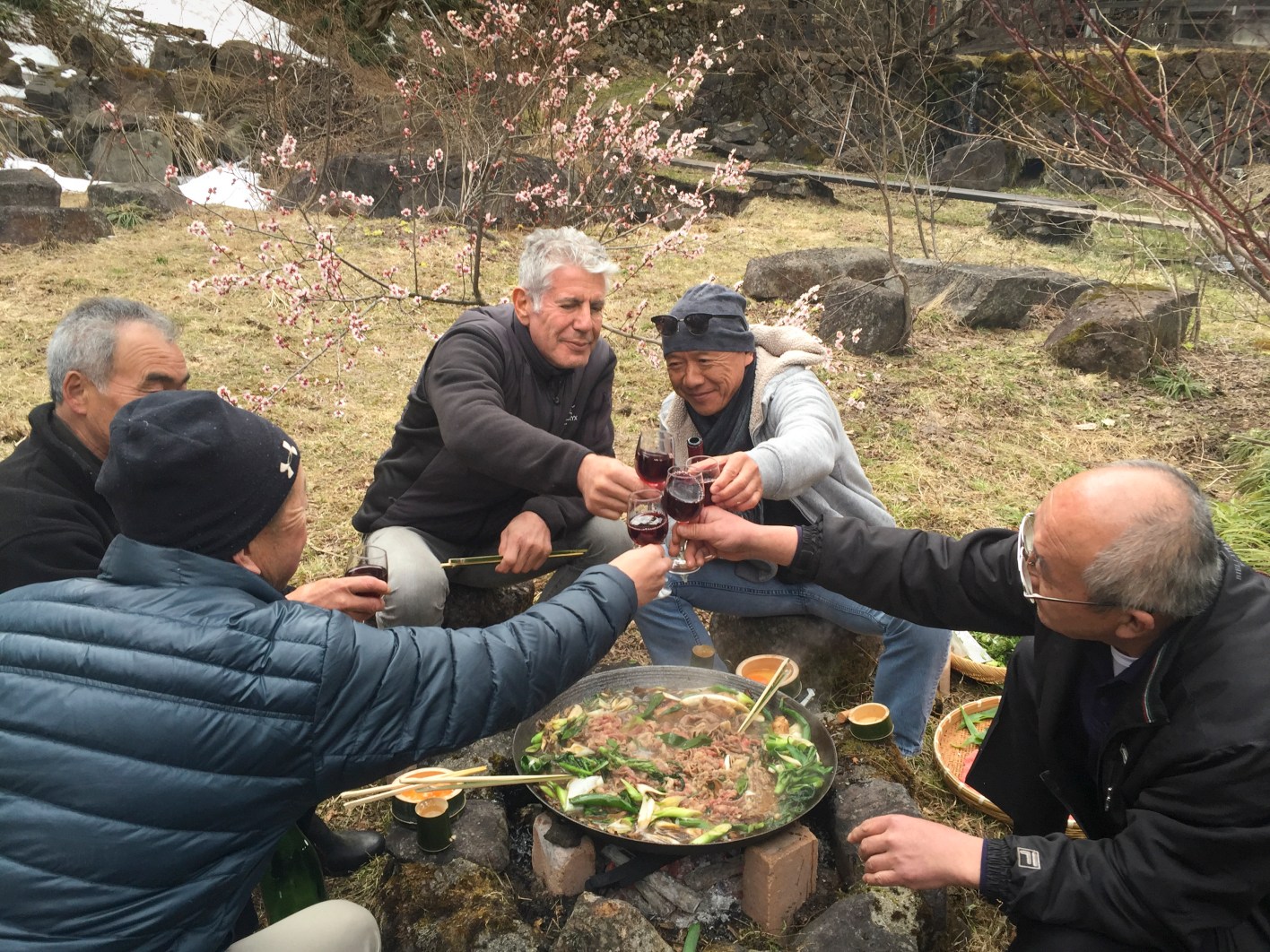 Tony described this area as "unlike anyplace I've ever been in Japan." Masa's good friend and pottery mentor, Haruo Konishi has a family hideaway here. They made iwana (char) caught that day in a mountain stream, Hokkaido scallops, wild Japanese boar, grilled fukinoto, and soba noodles with duck, green onion, and dashi sauce.