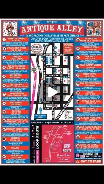 12,000 square feet of vintage Las Vegas—memorabilia, mid‑century furniture, records, jewelry—from dozens of local vendors. A Main Street staple and essential stop for one‑of‑a‑kind souvenirs.