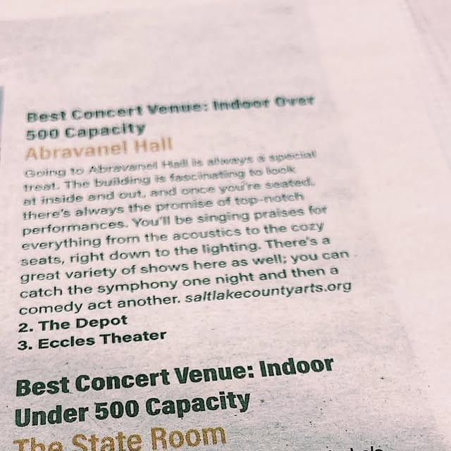 Locally owned and loved, this 299-capacity listening room draws national touring acts with great sightlines and sound. Regularly highlighted by Visit Utah and local magazines, it’s a quintessential Salt Lake night out—grab dinner nearby and settle in for the show.