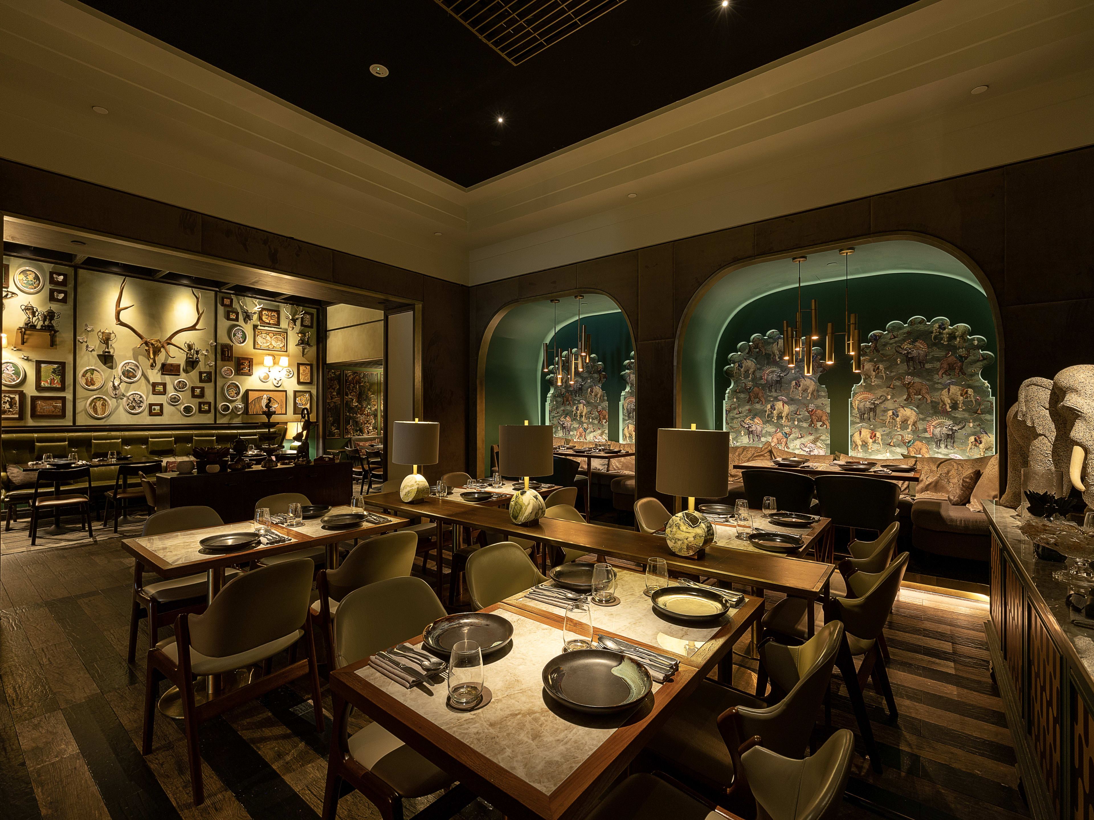 "A theatrical, Bollywood-inspired dining destination with four whimsical themed rooms, this restaurant pairs flamboyant interiors with inventive modern takes on classic Indian dishes under Head Chef Raj Kumar. Signature creations include the Cheezi Freezi—an inventive paneer jalfrezi riff that substitutes creamy burrata and presents the jalfrezi sauce in a gazpacho style with charred peppers and cumin honey—and the Bengal Bake-off, a reinterpretation of fish paturi using French seabass marinated in mustard and baked in a salt crust; the kitchen’s bold, playful executions mirror the venue’s exuberant decor." - Dinesh Ajith