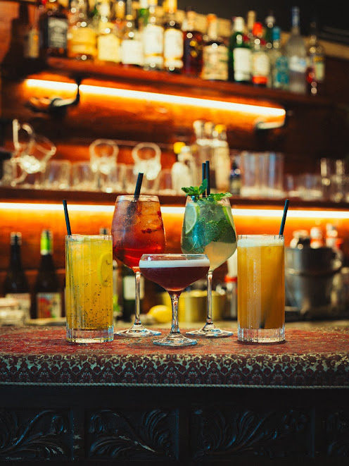 Cocktails, vineyard wine, orchard cider, farm-reared meat