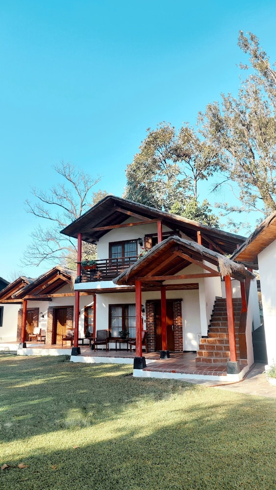 Rustic lakeside hotel with pool, private beach, and volcano views