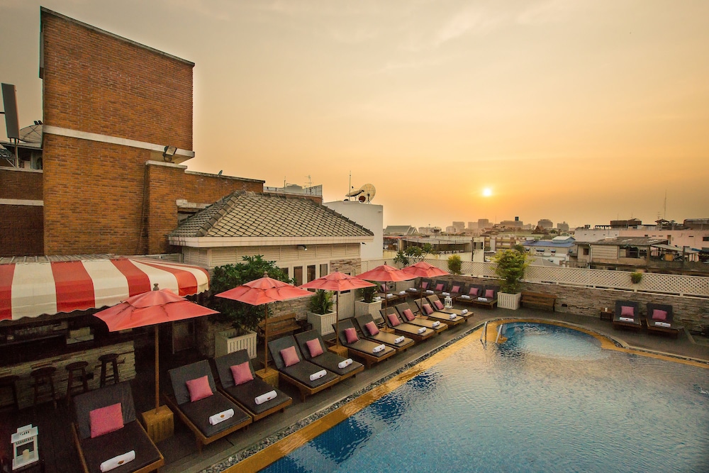 Rooftop pool, bar, gym, and sauna in a laid-back hotel.