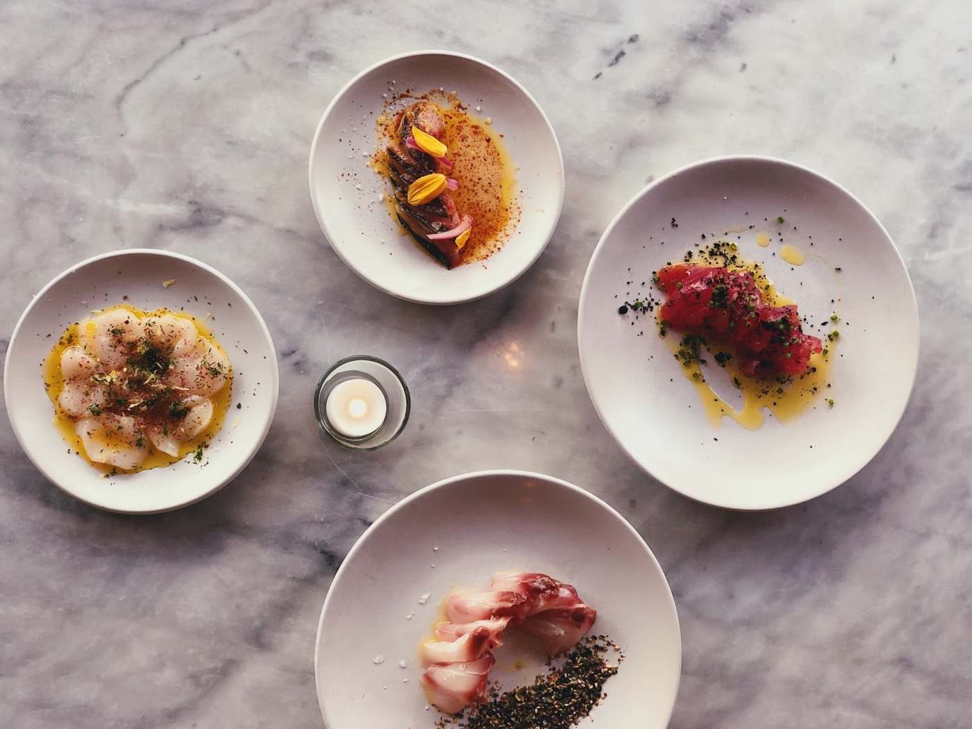 Crudos, oysters, natural wine, small seafood dishes