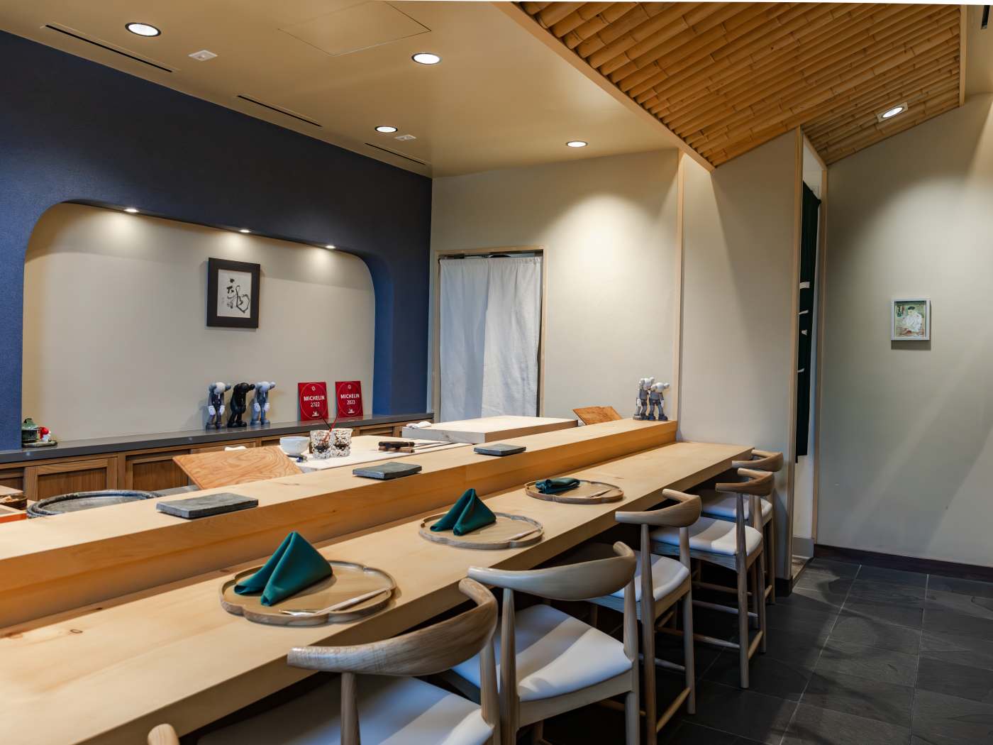 "Originally from Osaka Prefecture, Chef Seigo Tamura came to the United States with dreams of becoming a professional basketball player. Thankfully for Los Angeles, the only points he's scoring are with diners. The eight-seat counter is wonderfully spacious, and chef mostly keeps to himself as he blends the traditional with the inventive. This is in part evidenced by the surprising number of cooked dishes deployed throughout the meal. All of the seafood comes from Japan, and larger fish like tuna are aged in-house. Rice for the nigiri is on the firmer side with a touch of sugar added as a nod to his Osaka roots. Japanese hospitality reigns, with staff welcoming diners outside, and the chef seeing guests off personally at the conclusion of the meal." - Michelin Inspector