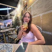 We stayed at the Hyatt and decided to eat here so we could sit outside and enjoy the beautiful weather and scenery. There were two things we notices right off the bat: It was 5:30pm and we were the only ones sitting outside, and second, not a server in sight. After a few minutes, our server brought us our menu and took our drink order. Our order was quite simple: A white wine and a diet coke. It took about 10 minutes for them to be delivered and again, we were the only ones sitting outside.