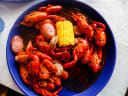 Seasoned crawfish, crab legs & shrimp with flavorful sauces
