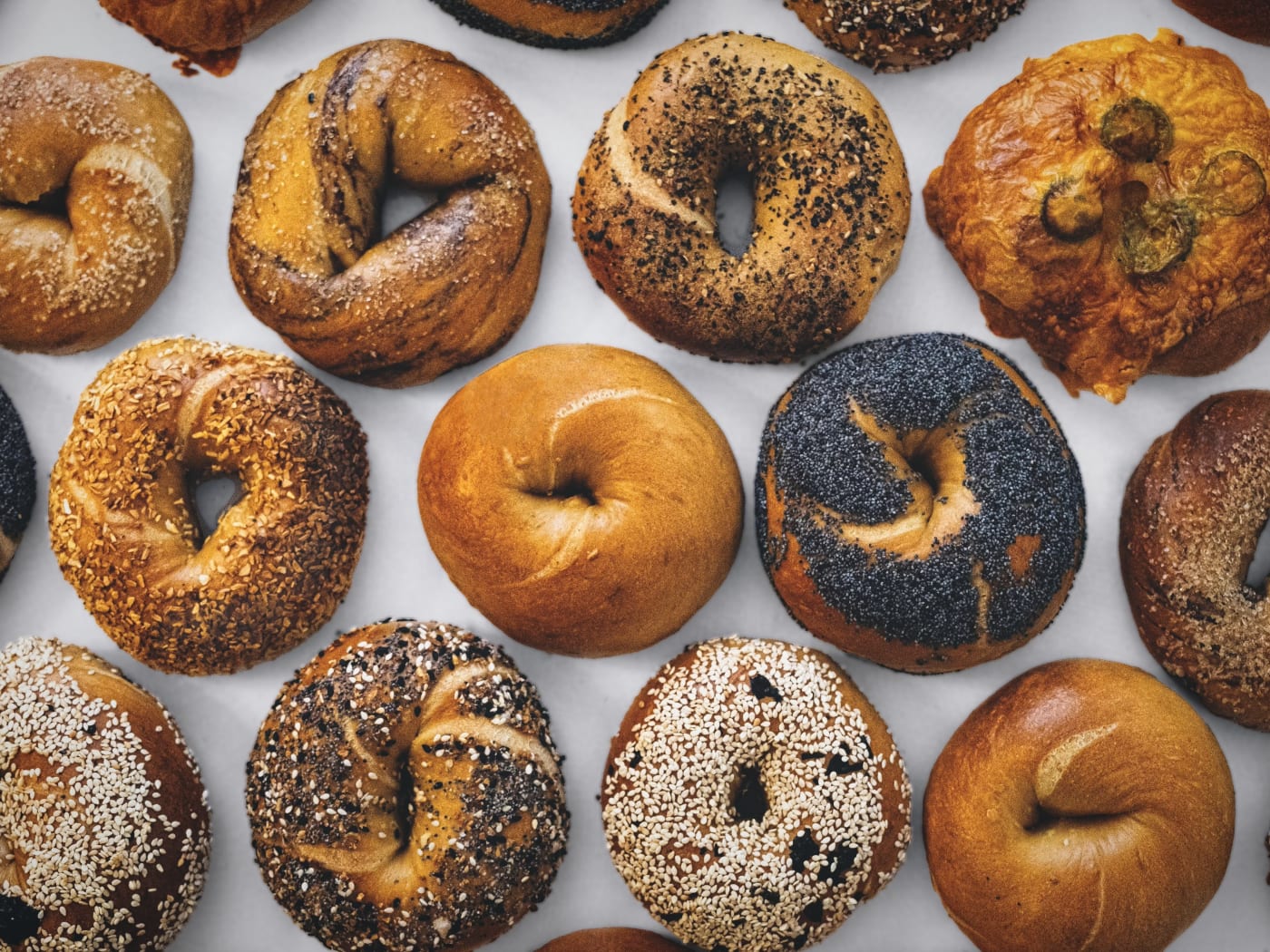 Fresh bagels, bialys, babkas, pizza, and coffee beverages