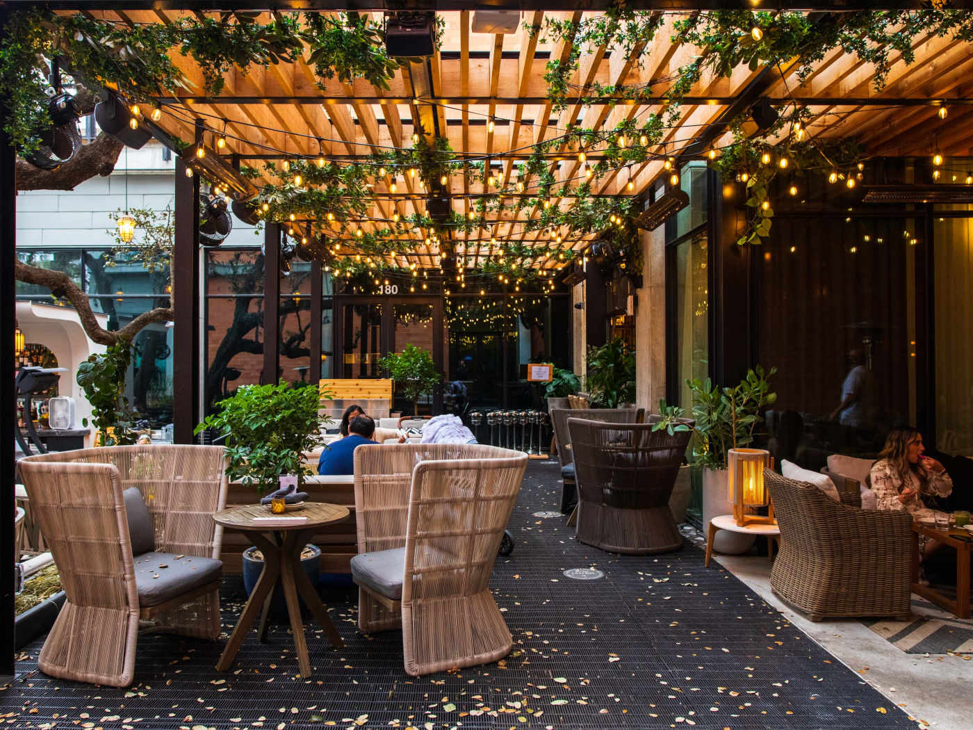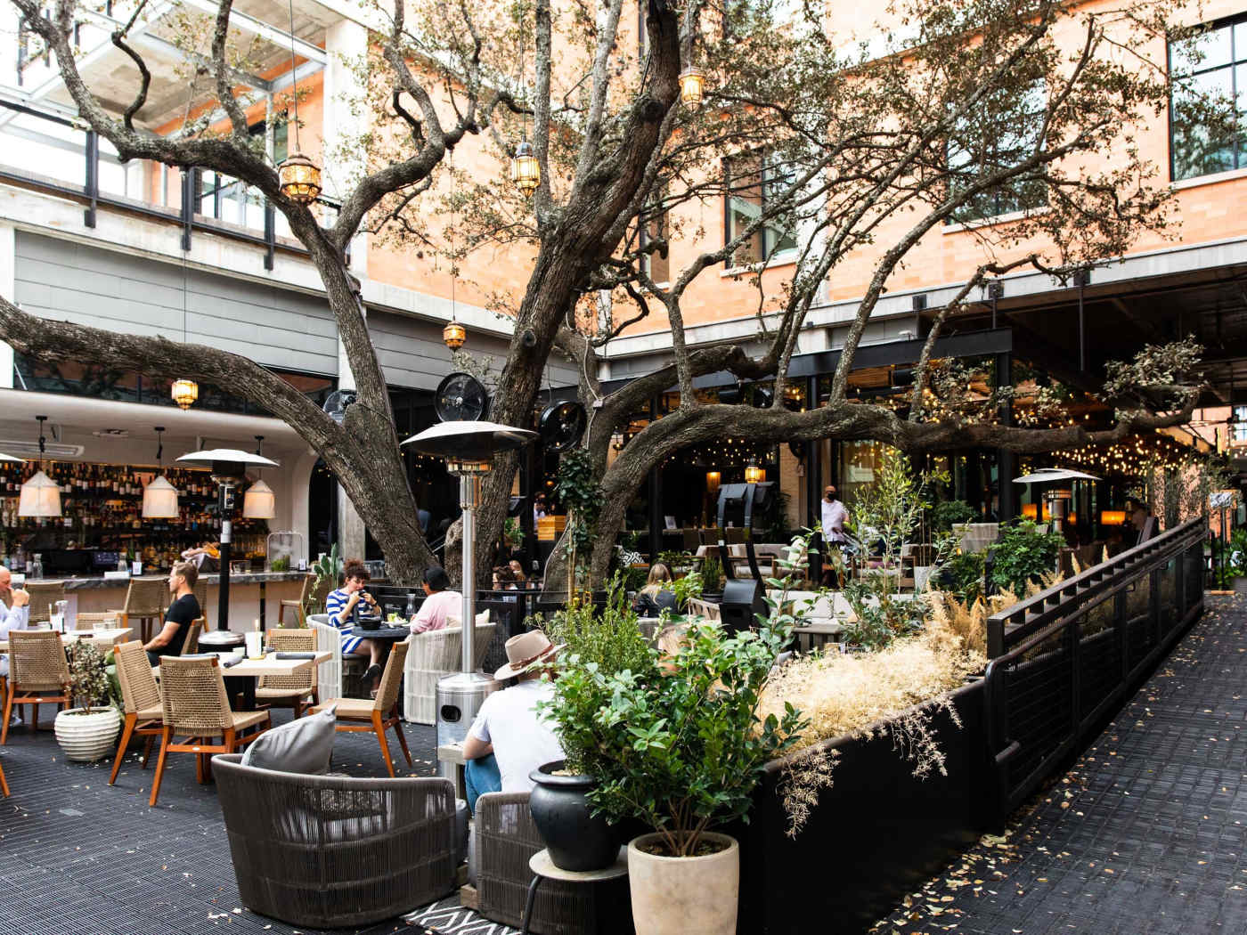 "The footpath outside Aba is like a catwalk—long, narrow, and full of heads turning to see who’s approaching the restaurant next. This hard-to-book Mediterranean spot has commandeered its little area of South Congress, with a chic outdoor bar, tables on either side of the runway, enchanting string lights overhead, and a sea of people who might be carrying bags they bought at Hèrmes around the corner. Unlike most of the patios on this guide, this one usually requires some planning—it's worth the effort, even if we aren't wild about the food. Reservations during normal dinner hours are typically available about six to eight weeks out, but if you just want to stop in for afternoon drinks and snacks—or you're okay with a 9pm meal—you can usually grab something about a week or two out. If you want a patio seat, you can make a request when booking, but they’ll be seated on a first come, first served basis. And when the weather’s nice, the patio is where everybody will want to be. That means you can sometimes grab a seat in the dining room as a walk-in, but then you’re missing one of the few redeeming things about Aba." - nicolai mccrary, raphael brion, matthew jacobs