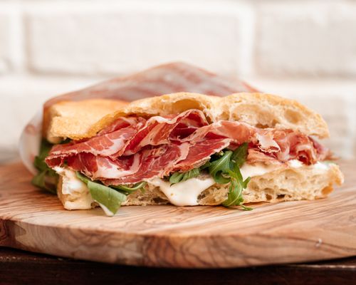 "In 2019, All’Antico Vinaio popped up in NYC, and the lines made people seriously weigh the value of their time against the need for an Italian sandwich. A permanent location of this Florence import is now in Midtown, and everything on the sandwich-only menu uses thin, crusty Tuscan schiacciata bread. They offer a lot of popular Italian meats like prosciutto and mortadella, but what’s unique are their creamy spreads that come in varieties like pistachio and ‘nduja. The sandwiches are huge, and once you try one, you’ll want to try the rest. It’s good to have goals." - team infatuation