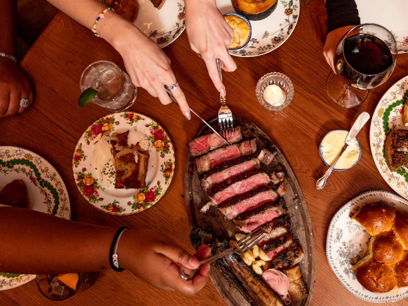 "Most steakhouses fall into one of two camps: traditional, white tableclothed chophouses with tufted leather booths and servers in tuxedos, and sleeker, trendier places with unconventional menu options and TikTokers going live over ribeyes. Alpen Rose, the Schulson steakhouse in Midtown Village, sits smack dab in the middle of the Venn diagram—it offers the top-tier service, quality, and portion sizes of a classic steakhouse, with the broader menu, casual vibes, and better soundtrack of the new school. It’s small, almost cozy, and the smoky, well-seasoned tomahawk is the single best piece of meat in the city. Be sure to get an order of the bone marrow toast and potato pavé, and forget about the chaos awaiting you on 13th Street." - alison kessler, candis mclean