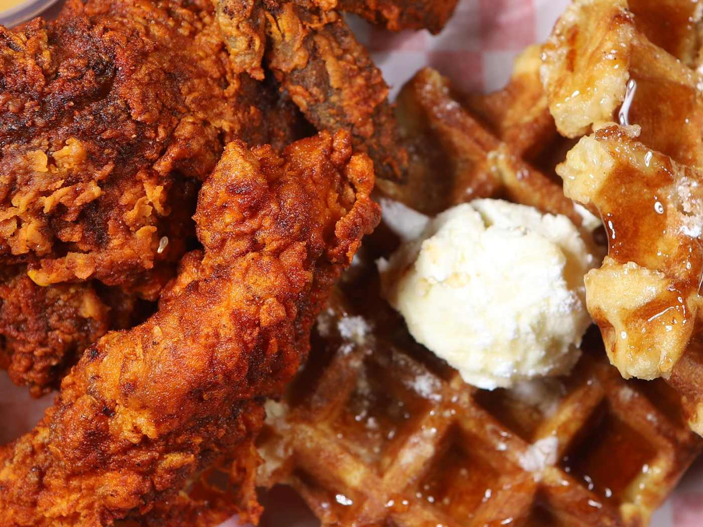 If you're a sucker for a good hot chicken sando, you definitely have to check out the CLUCK-ing hottest Nashville Hot Chicken sandwich in all of Los Angeles at @alshotchicken.santamonicablvd . Their spiciest level clocks in at 2.2 million Scoville Heat units, which is equivalent to the Carolina Reaper, and requires a signed waiver to try. While I personally didn't get to try this (since I was feeling a bit under the weather that day), I would definitely recommend at least "Hot" if you love spice as much as I do. I also love how they carry so many halal chicken tenders, sandwiches, quarters, wings, boneless, and waffle options, and you definitely can't go wrong with how fresh, well-seasoned, and tender their chicken is. I highly recommend their sandwiches, which are topped with a fresh coleslaw salad and very fluffy sandwich buns, as well as the chicken and waffles, which were beautifully crispy with sugar crystals and paired perfectly with the spicy chicken.