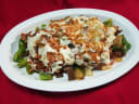 My tacos were stuffed to the brim with carne, fresh onions and tons of cilantro, the best way to have tacos in my personal opinion. The meat wasn't top quality, but it was cut into small pieces and was nice and hot. After taking a bite of my tostada, I was desperate for some salsa, there was no cilantro to spice up the tostada and I was searching for some more flavor. I finally spotted two squeeze bottles of salsa across the room and asked if I could use them. There was green and red and they were perfect. Now my tostada was complete.