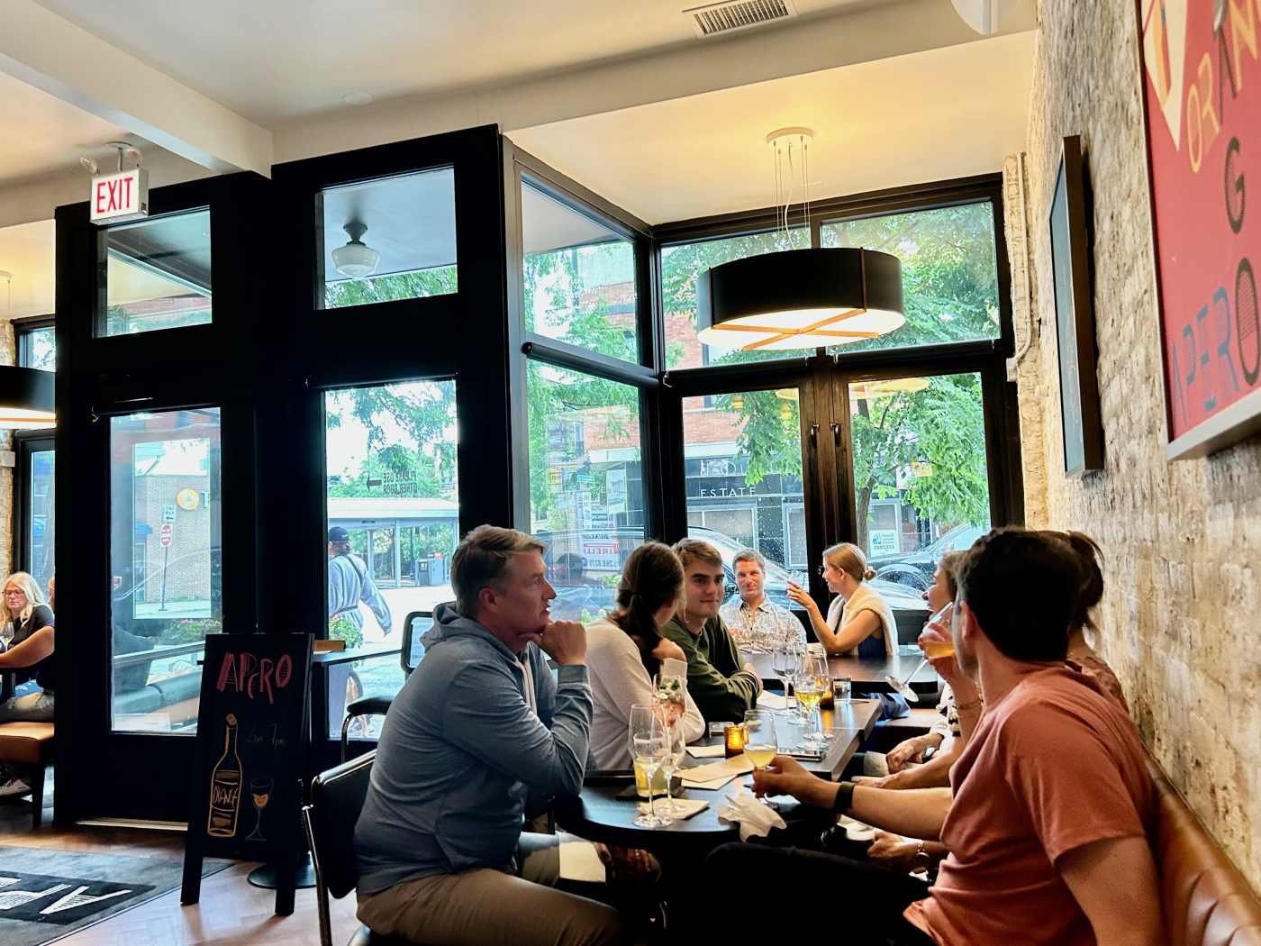 "Apero is a small wine bar in North Center with a back patio and an approachable drink list, whether you’re a brix expert or someone who needs to ask Siri what brix is. The menu covers a wide range, from bubbly rosés to citrusy skin contacts, with only about four choices per type of wine and glasses priced between $12-$19. They also have a short food menu with small bites and a couple of entrees—the seasonal tartines are particularly tasty, like one with pesto, pickled strawberries, and trout roe." - adrian kane, john ringor