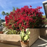 The patio itself is gorgeous. It's surrounded by lush desert landscaping, which creates a private and peaceful feel. What really stood out to me was the lighting. Between the uplighting on the plants, the natural light from sunset, and the soft candle glow on the tables, everything looked magical. I'm pretty picky about lighting and ambiance, and it completely exceeded my expectations.