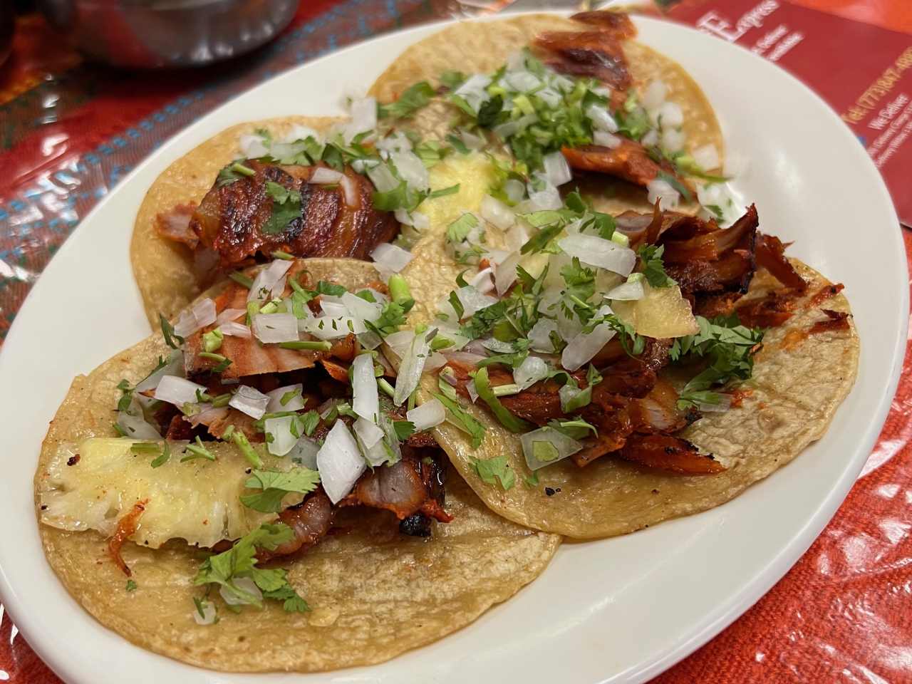 Al pastor tacos, pastor fried rice, Chinese and Thai