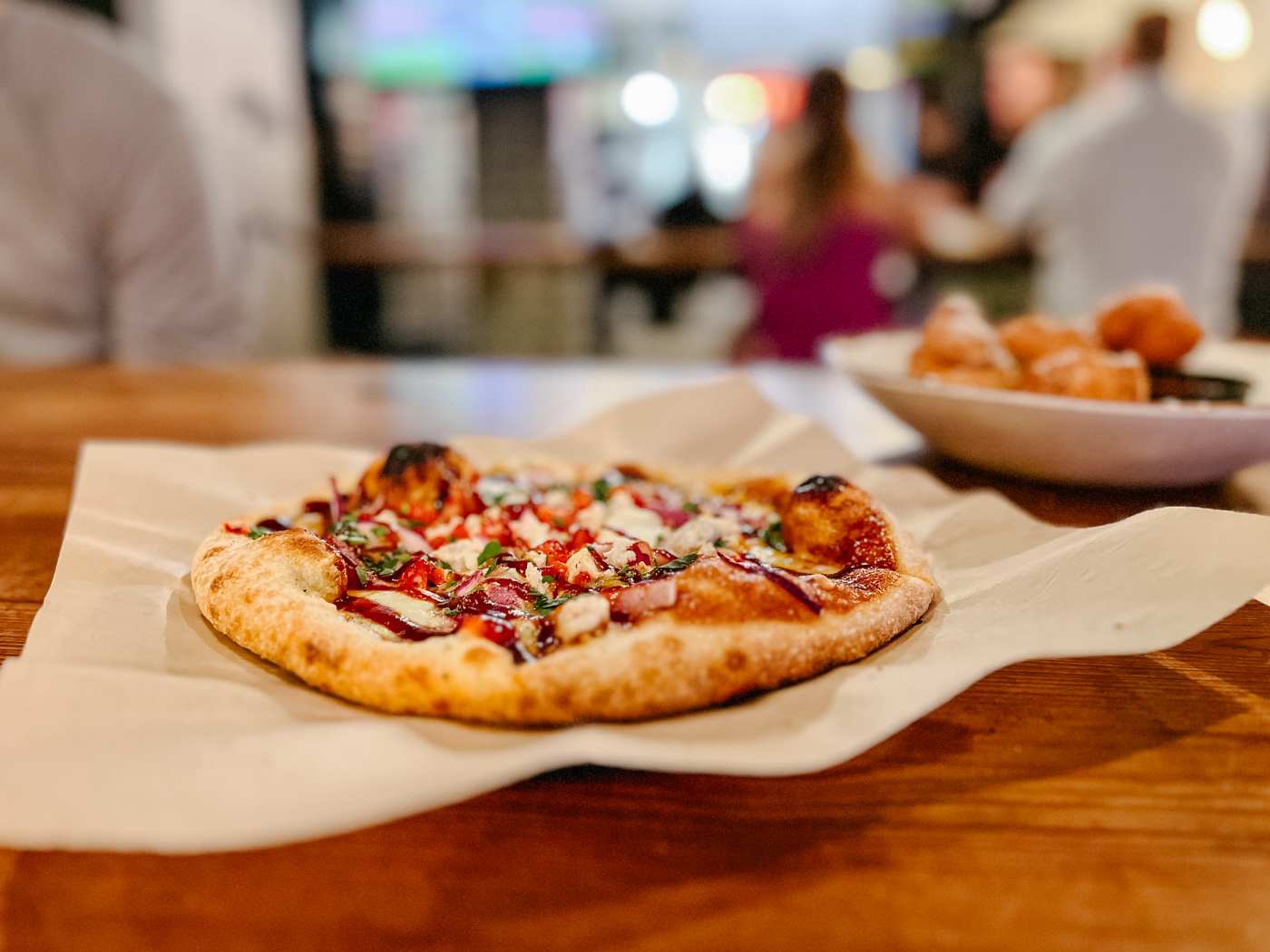 I am obsessed with BBQ chicken pizza, and the Chicken Coop Deville was fabulous. Loaded with bbq sauce, springer mountain chicken, bacon, cheddar, fontina, red onion, roasted red pepper, fior di latte, parmesan, and cilantro, it was perfectly balanced.