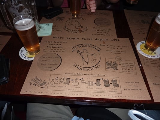 The year I lived in Strasbourg, this was one of my favourite places to hang out and enjoy a beer with friends. Les Brasseurs (also known as 'Aux Brasseurs' and 'Les Trois Brasseurs' depending on who you ask) is not very fancy. But if you're looking for excellent beer, mouthwatering tarte flambées, and an unpretentious, jovial atmosphere, you've come to the right place.