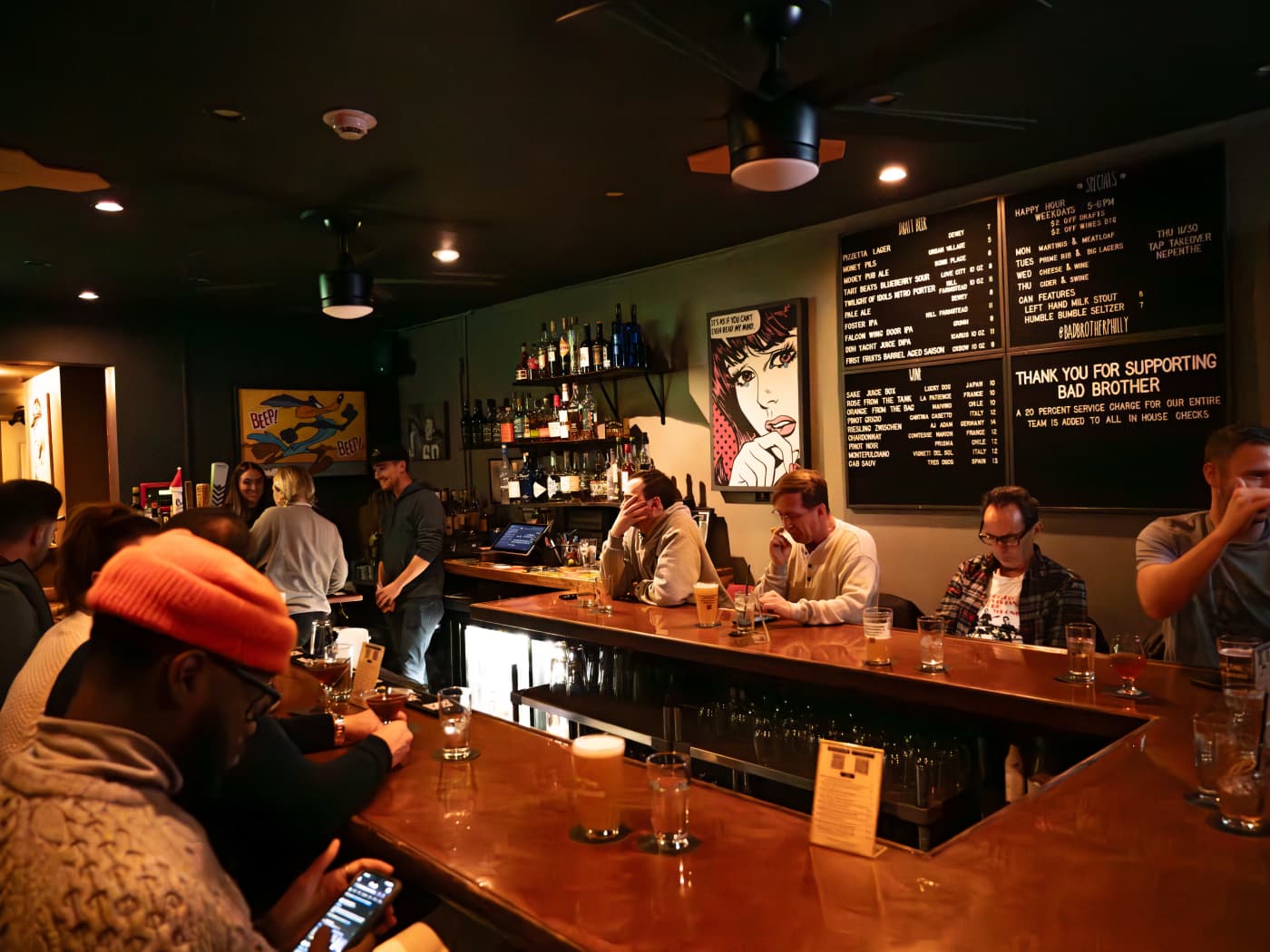 It is easy to understand the Fairmount resident compulsion to gatekeep the heck out of Bad Brother. Upon arrival around 6pm on a Friday, my friend and I were hoping to score bar seats to enjoy some post-work dinner and drinks. Both of us live in the neighborhood, had never been, and were way past-due for a visit. No dice on the bar seats since the Bad Brother happy hour is such a crowd favorite, but the awesome staff here squeezed us in at a table for 2 upstairs.