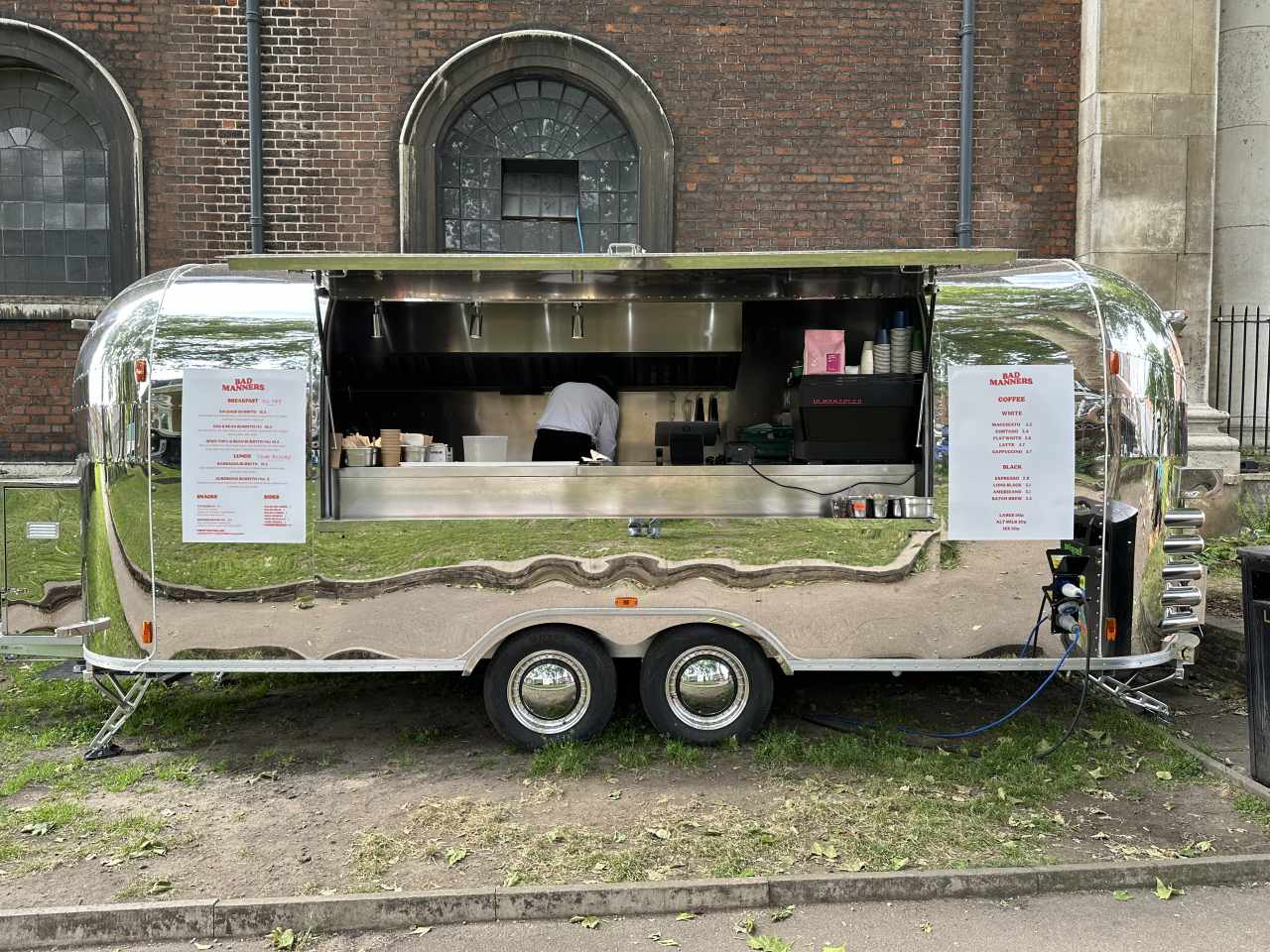 "Open for: Breakfast and lunchPrice range: $Bad Manners — a breakfast and lunch kiosk, originally called Quarter Kitchen, which Max Fishman opened with chef Rodrigo Cervantes in a Hackney churchyard in summer 2022 — serves some of London’s best Mexican food. Originally from Mexico City and previously an employee of Smoking Goat, Koya, and Rita’s in London, Cervantes cooks a mighty fine breakfast. Options include two tortillas with hash browns, fried eggs, and smoked bacon glazed with maple syrup and sugar; breakfast burritos based on the American McDonald’s version (with sausage patties, American cheese, and chopped peppers); gorditas; tepache; tacos al pastor done on a small yakitori grill inside the kiosk; and the mess-making bright-red pambazo. Bad Manners also serves excellent coffee and features a range of espressos from some of Europe’s best roasters.Best for: Mexican and Mexican-American breakfast outdoors." - Adam Coghlan