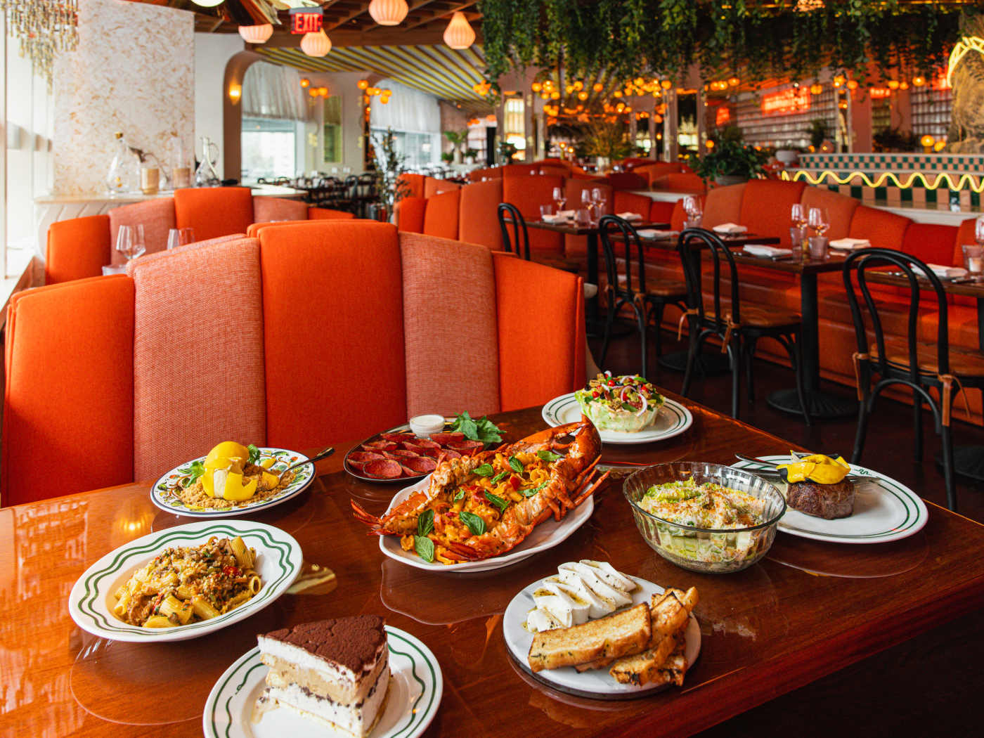 Italian restaurant with playful twists, bold decor, and signature dishes