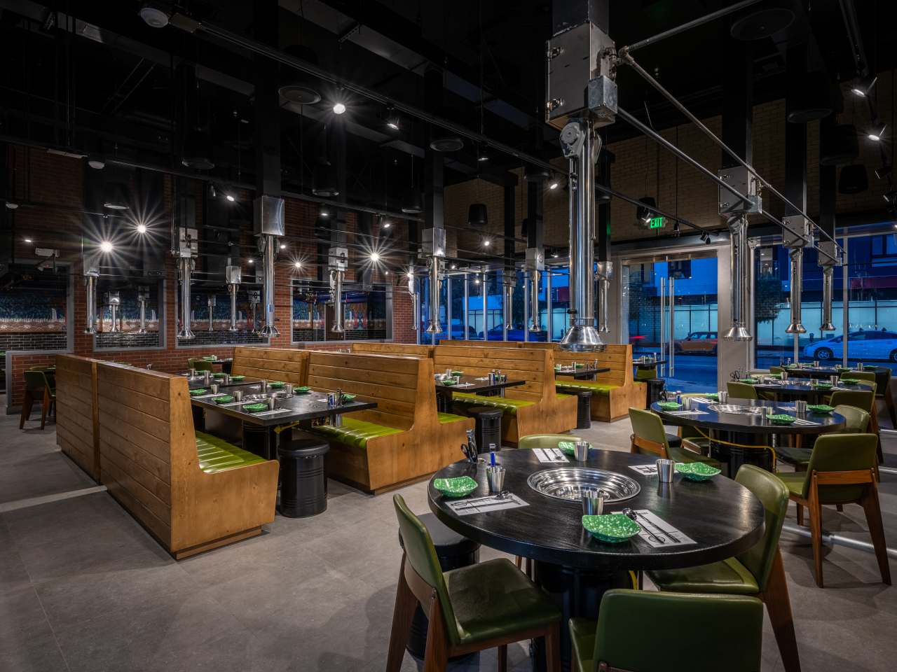 "A high-energy Korean barbecue destination that returned to Koreatown in larger, flashier quarters with high ceilings and faux Seoul street signage. The menu focuses on prime, well-marbled beef and pork cuts—short rib, rib-eye, and outside skirt among them—grilled by servers at the table alongside signature side features such as moats of steamed beaten egg and bubbling corn cheese; banchan has been refreshed with new salads and plateware to create a vibrant, drink-friendly dining experience." - Rebecca Roland