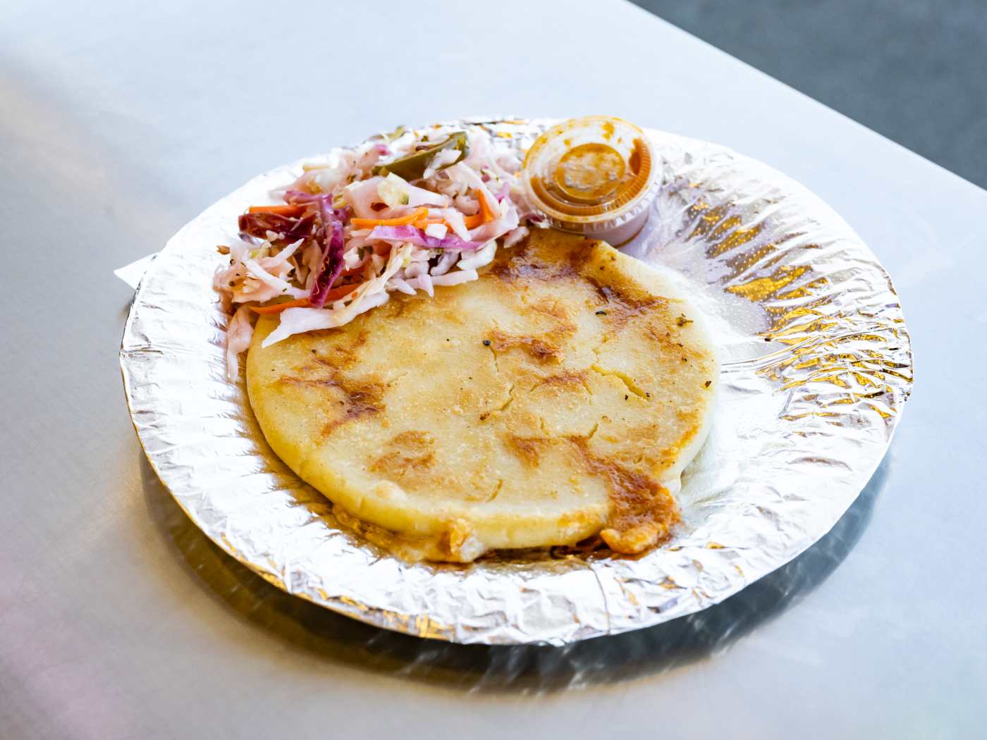 Pupusas, putacos, and salsa bar with fresh curtido